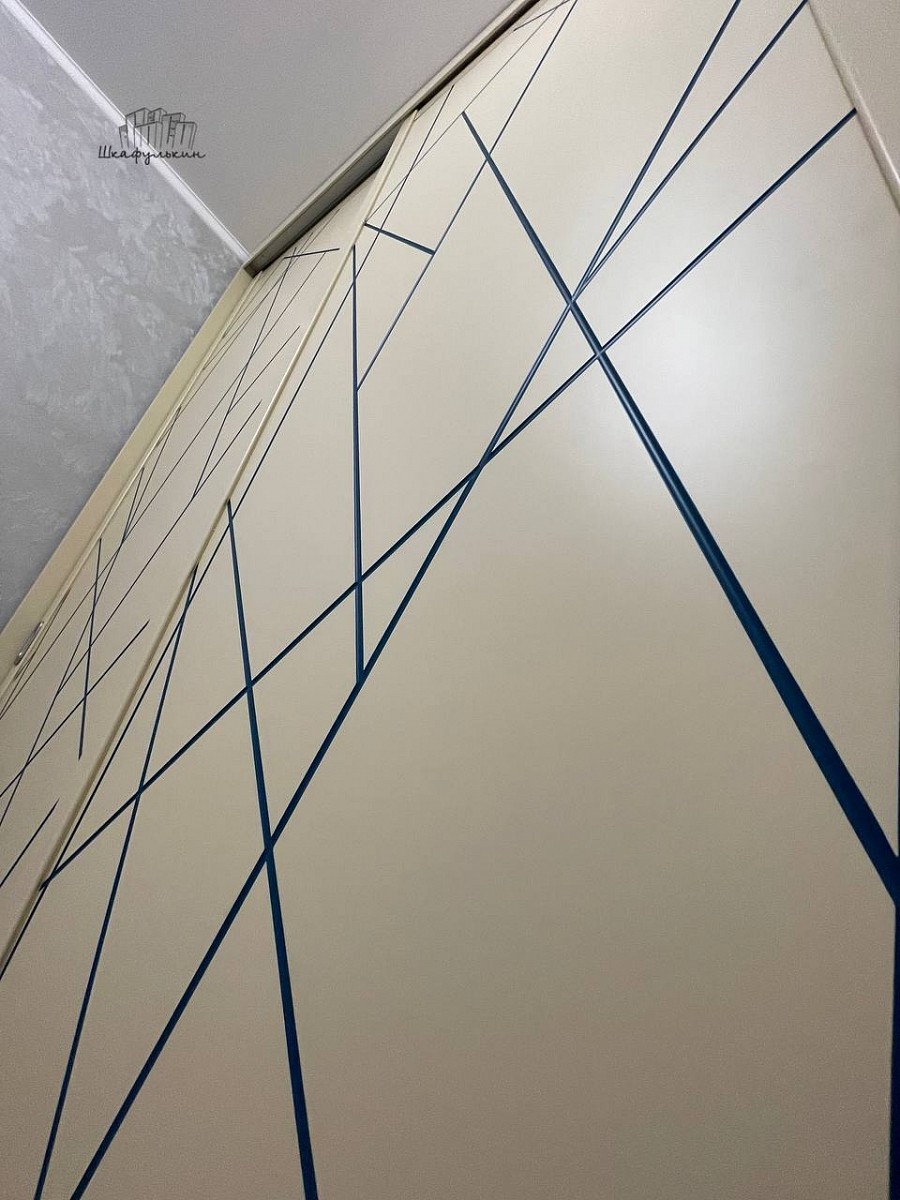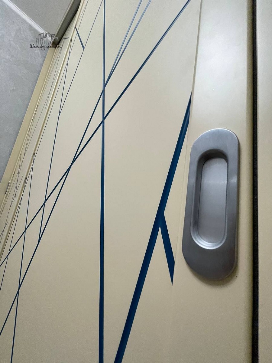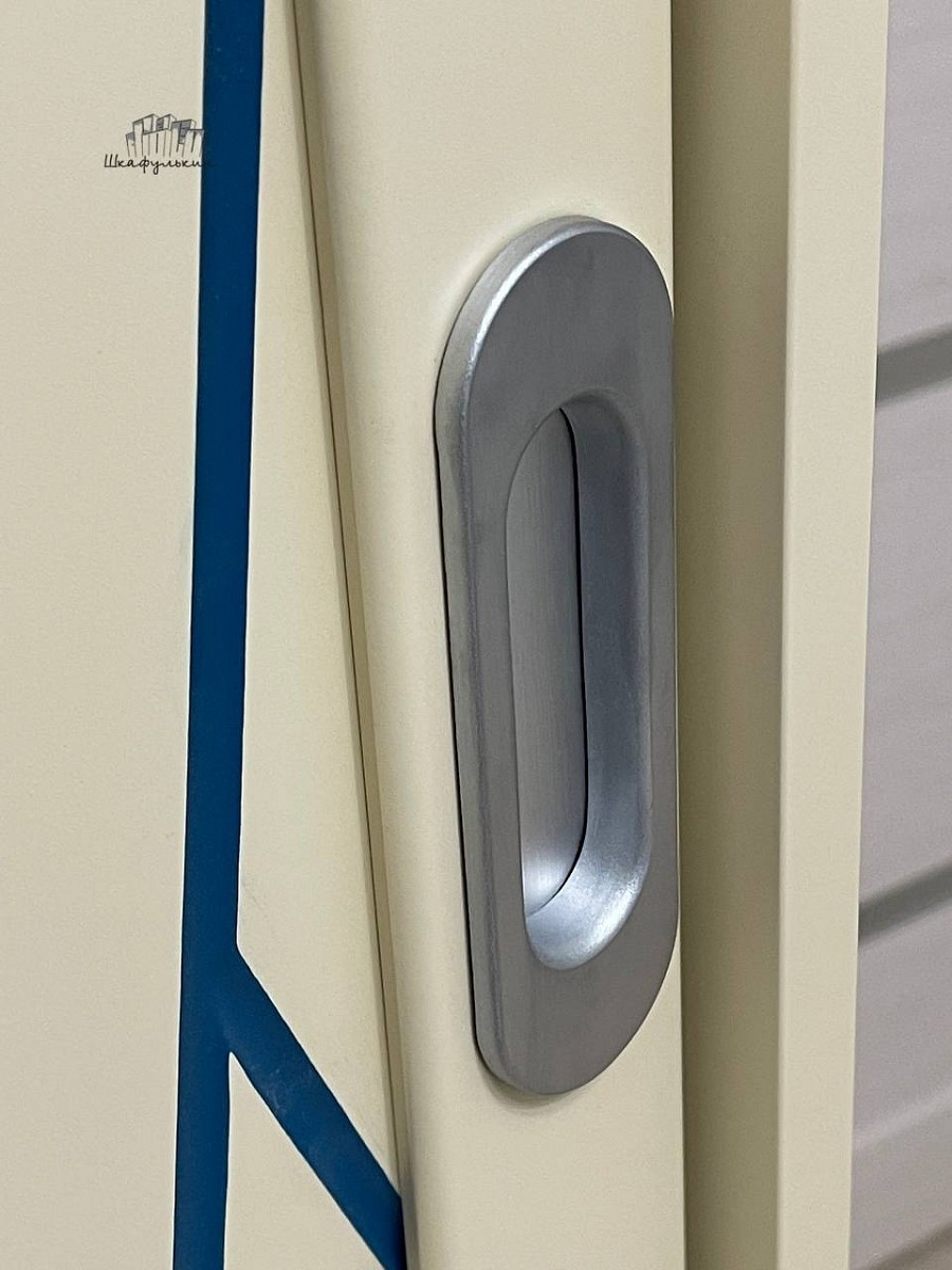 Двери-купе: 2 шт. / HOLZ 55х30, покраска: RAL 1015 матовая / вставка: МДФ 08мм RAL 1015 односторонняя матовая / треки: Серебро / заливка в канавки RAL 5009.