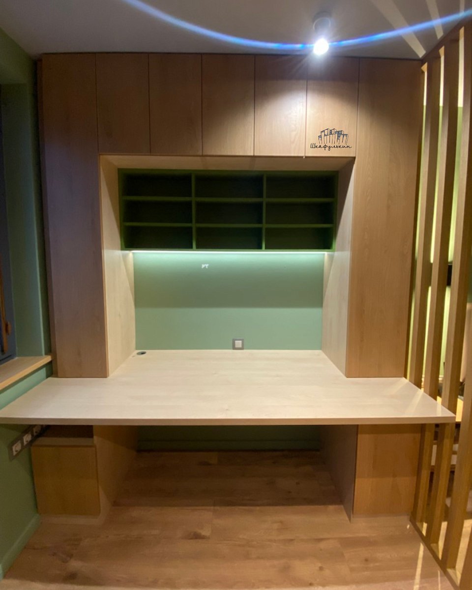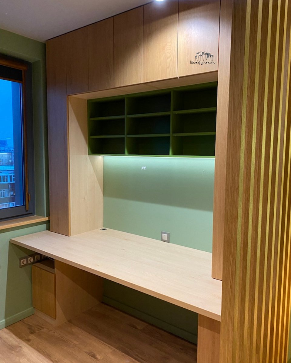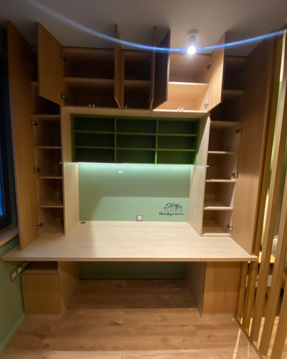 Материал фасадов: ЛДСП Клен Мандал натуральный / Зелёный киви.