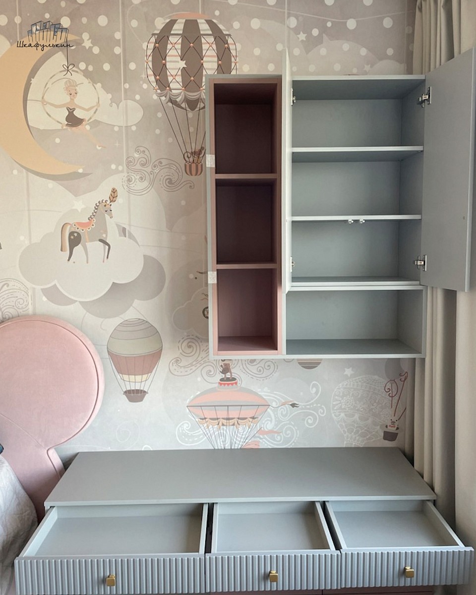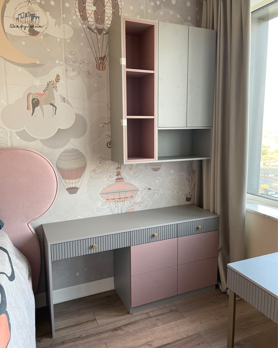 Фасады: ЛДСП Egger 16 мм/МДФ 18 мм/AGT Pinky Daisy/МДФ 19 мм/NCS S 4500-N.