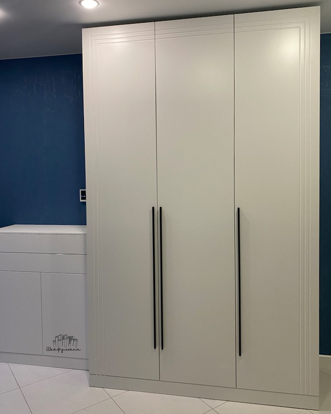 Материал фасадов: МДФ 16 мм / покраска: NCS S 0500 N односторонняя матовая (оборотная сторона белый ламинат).
