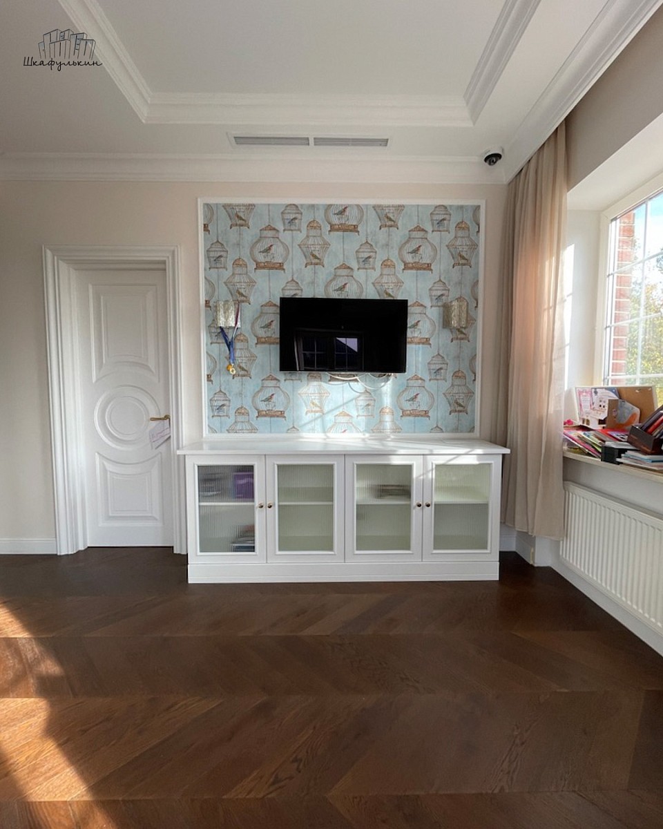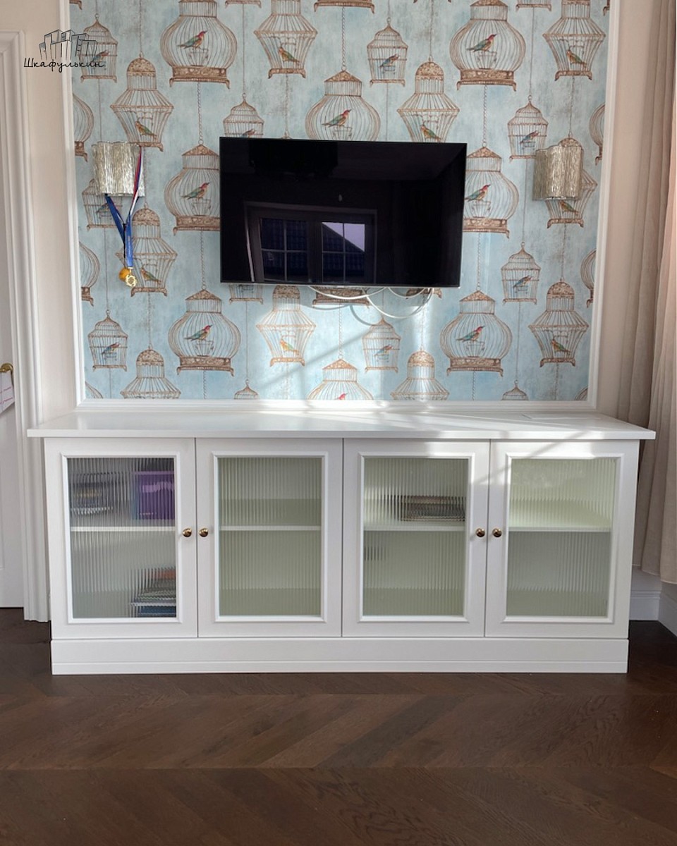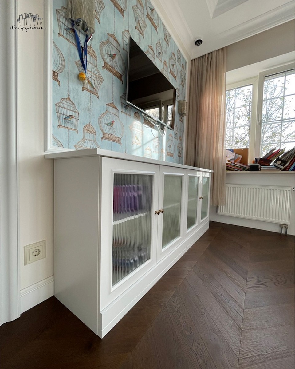 Фасады: МДФ 19 мм/RAL 9003 + стекло MORU.