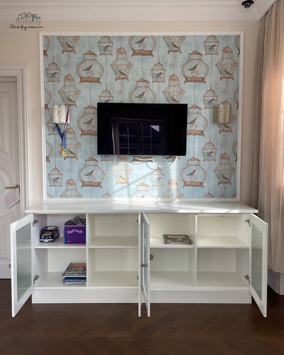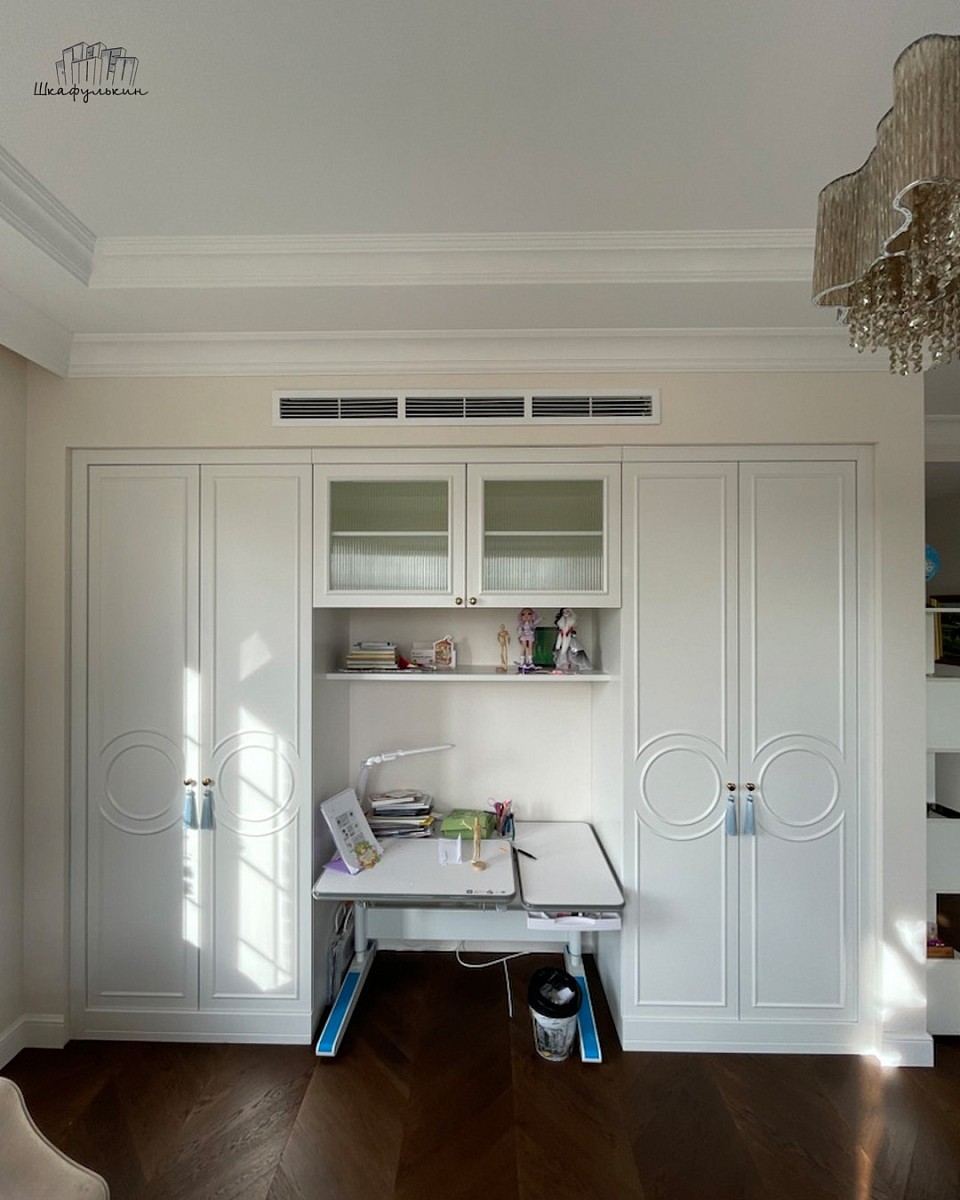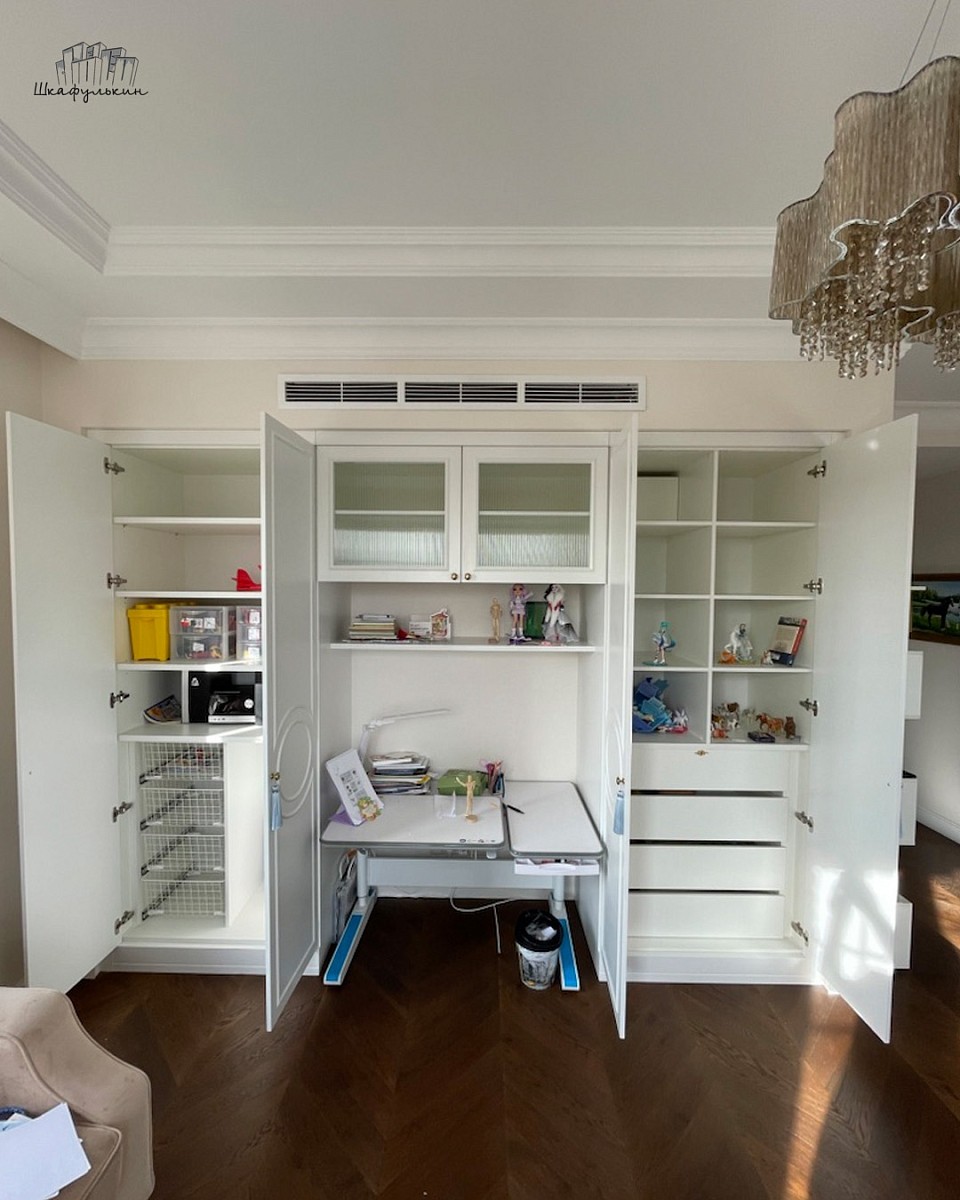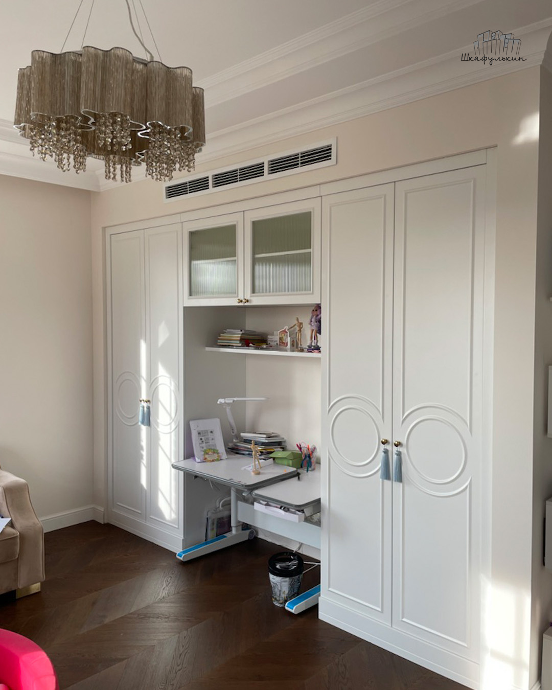 Фасады: МДФ 19 мм/RAL 9003 + стекло MORU.
