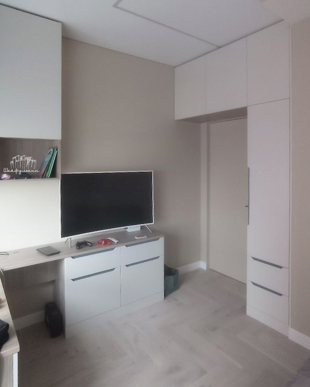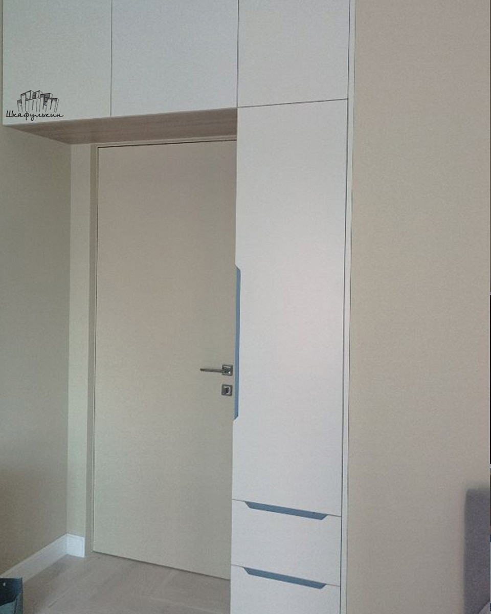 Материалы фасадов: МДФ 19мм/плоский/покраска: NCS S 1002 Y, односторонняя матовая/ручка-интегрированная.