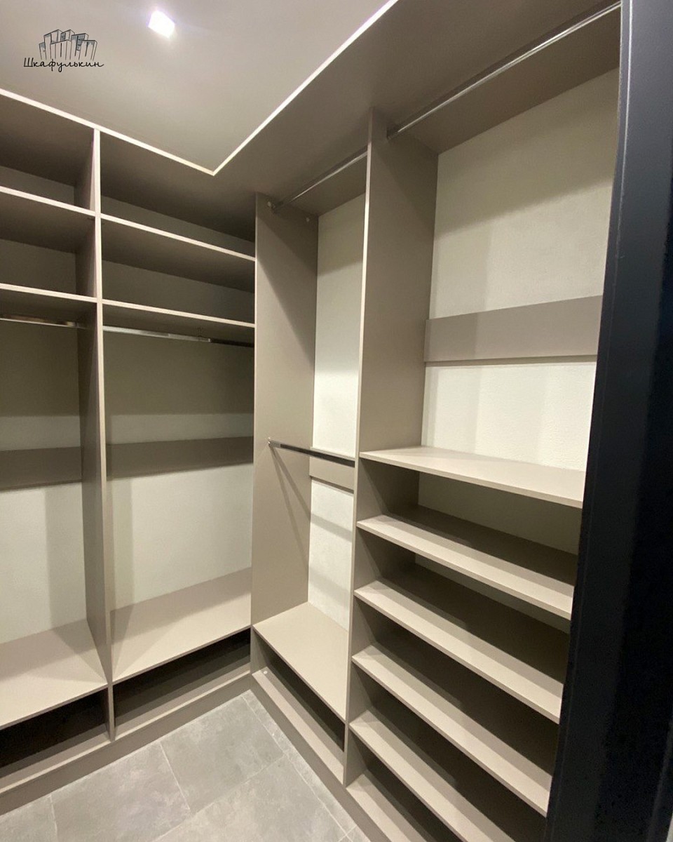 Размеры гардеробной в спальне: 1156/2480/1156х2878х450/550/450 мм.