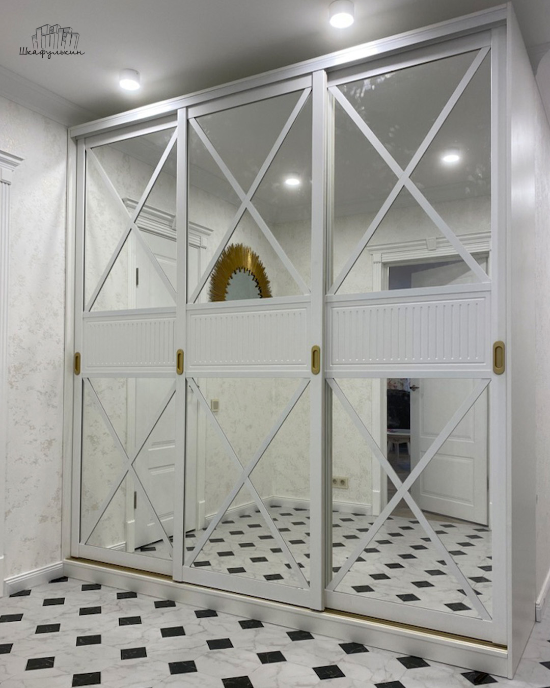 Двери-купе: HOLZ 55х30/RAL 9003 + зеркало серебро/МДФ 08мм/RAL 9003.