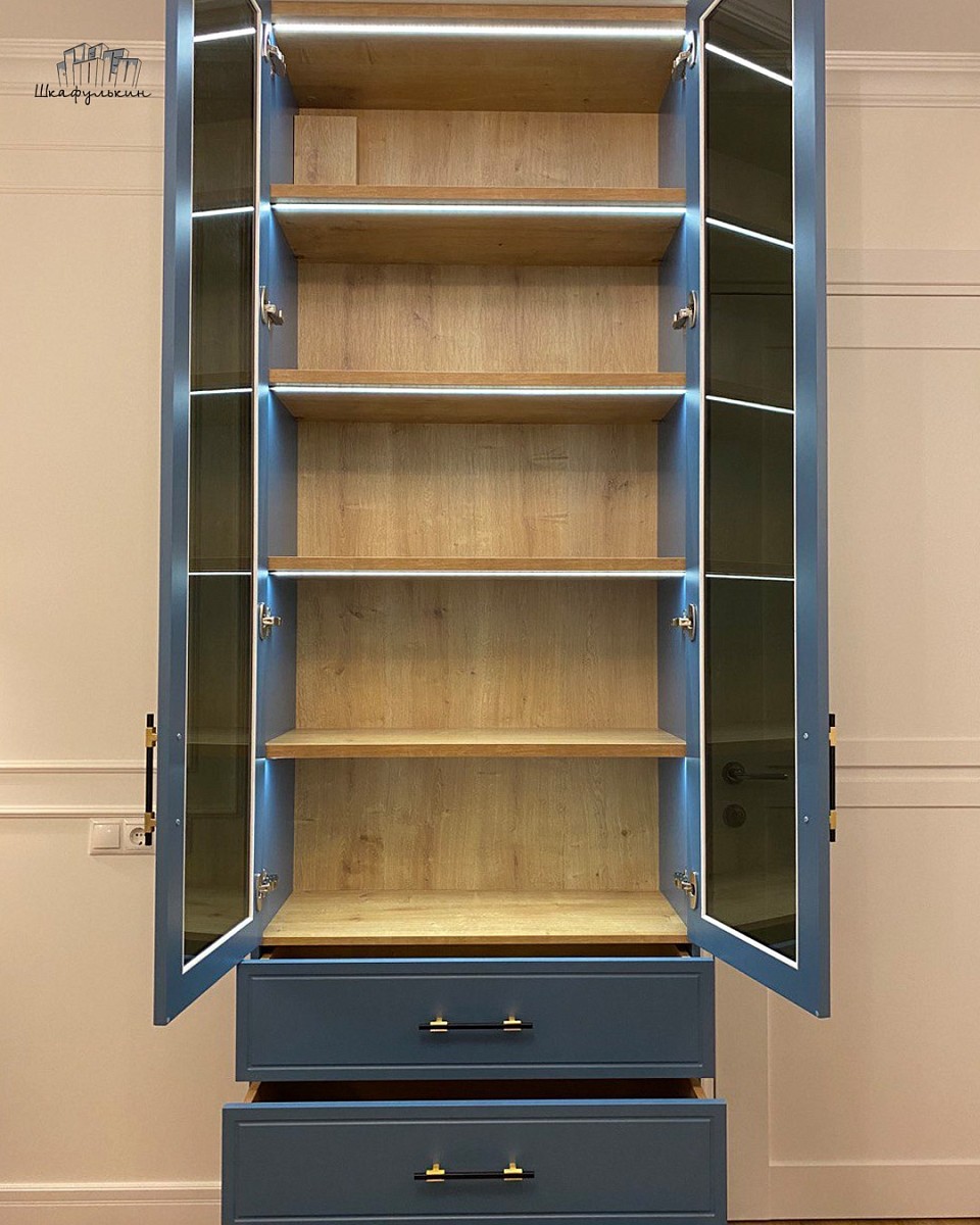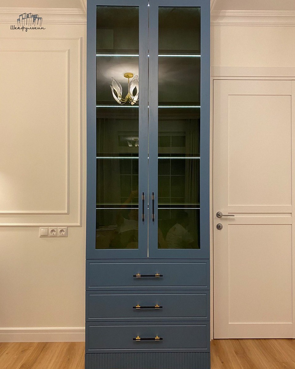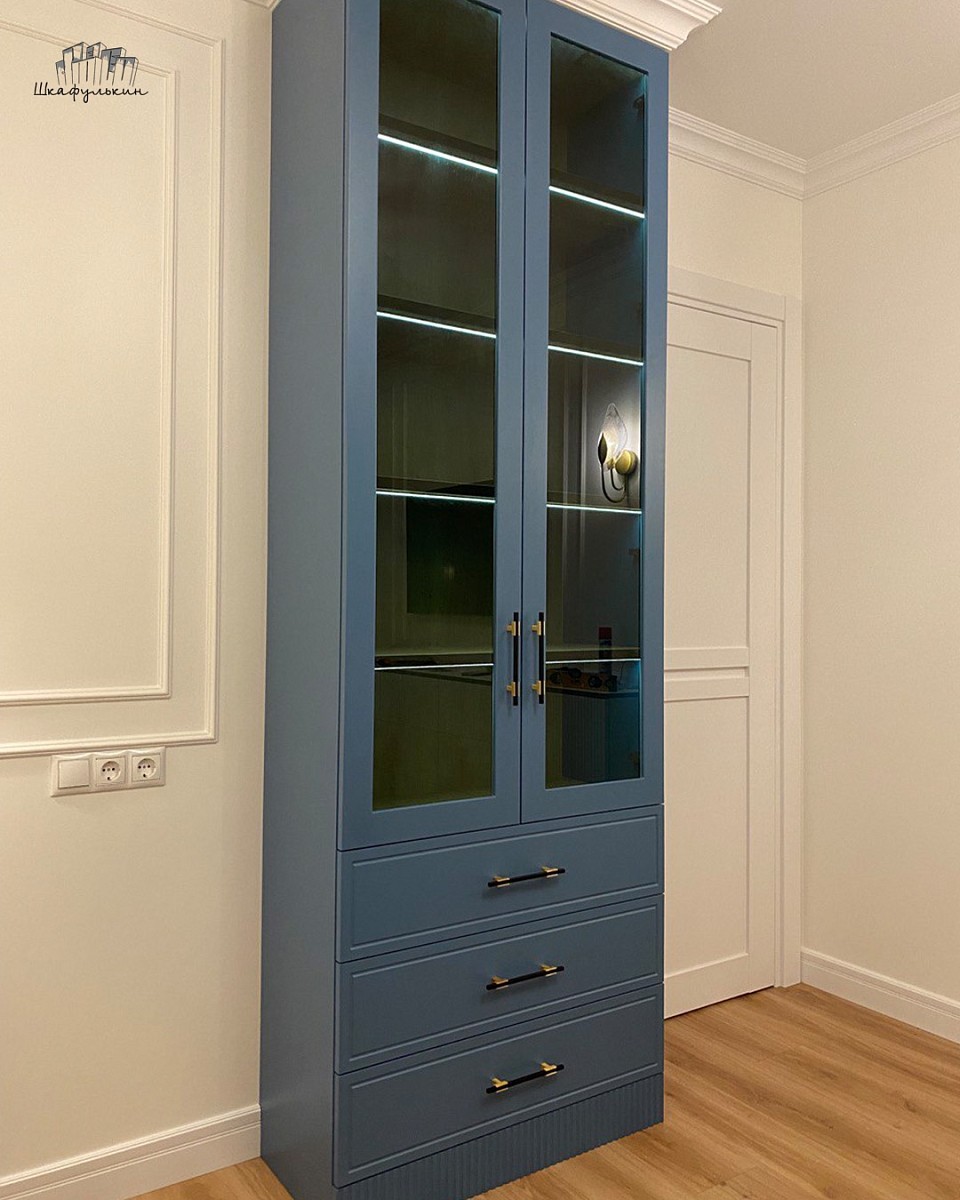 Фасады: МДФ 19мм/покраска: NCS S 5020 В + стекло Dark Grey.