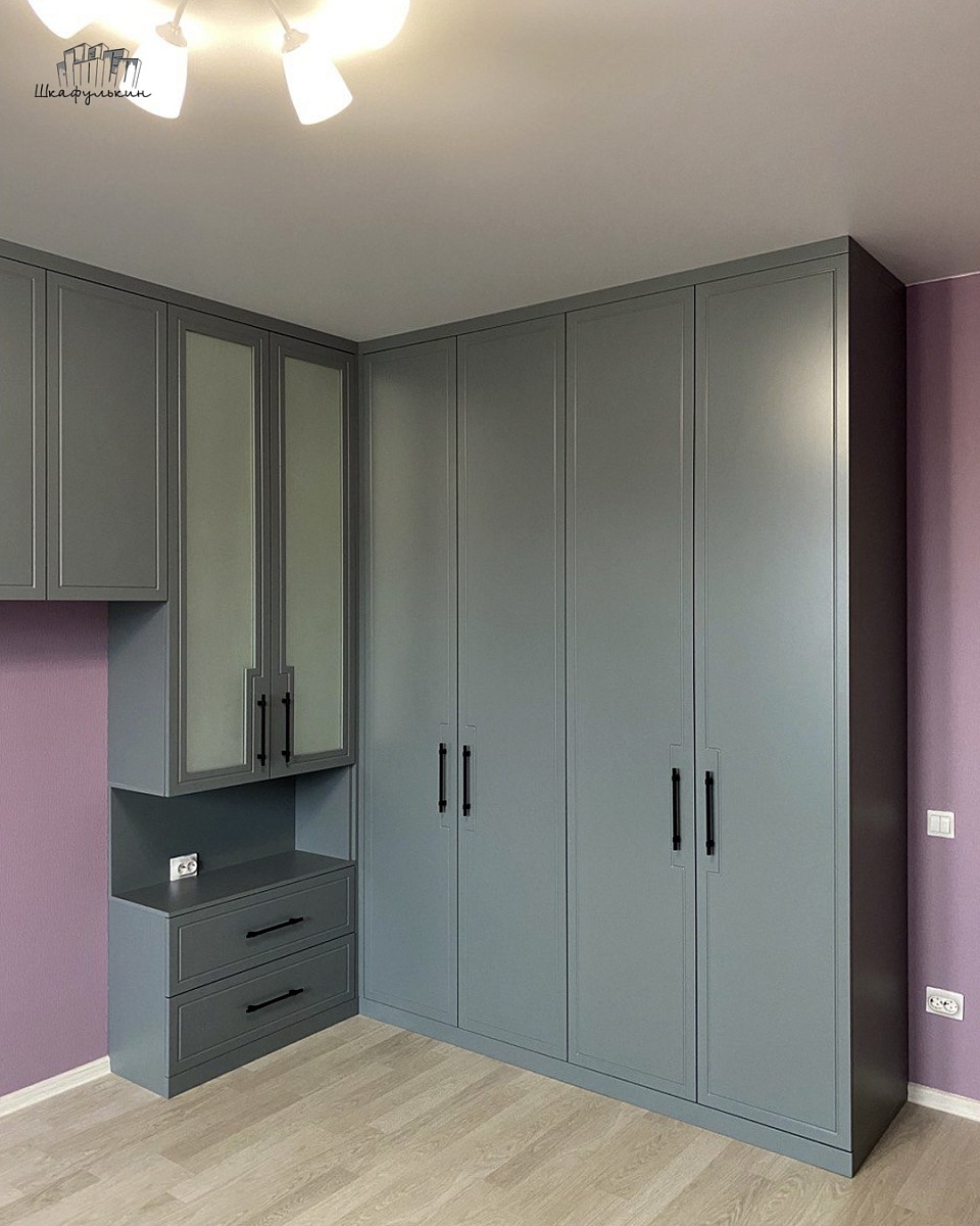 Фасады: МДФ 19 мм/NCS S 5005 B20G.
