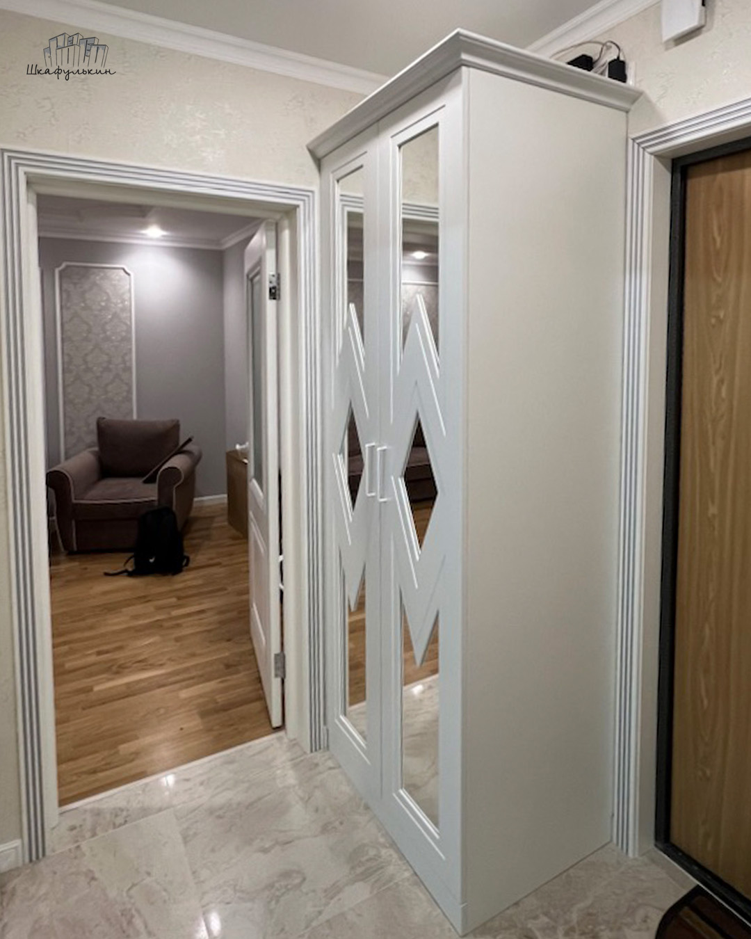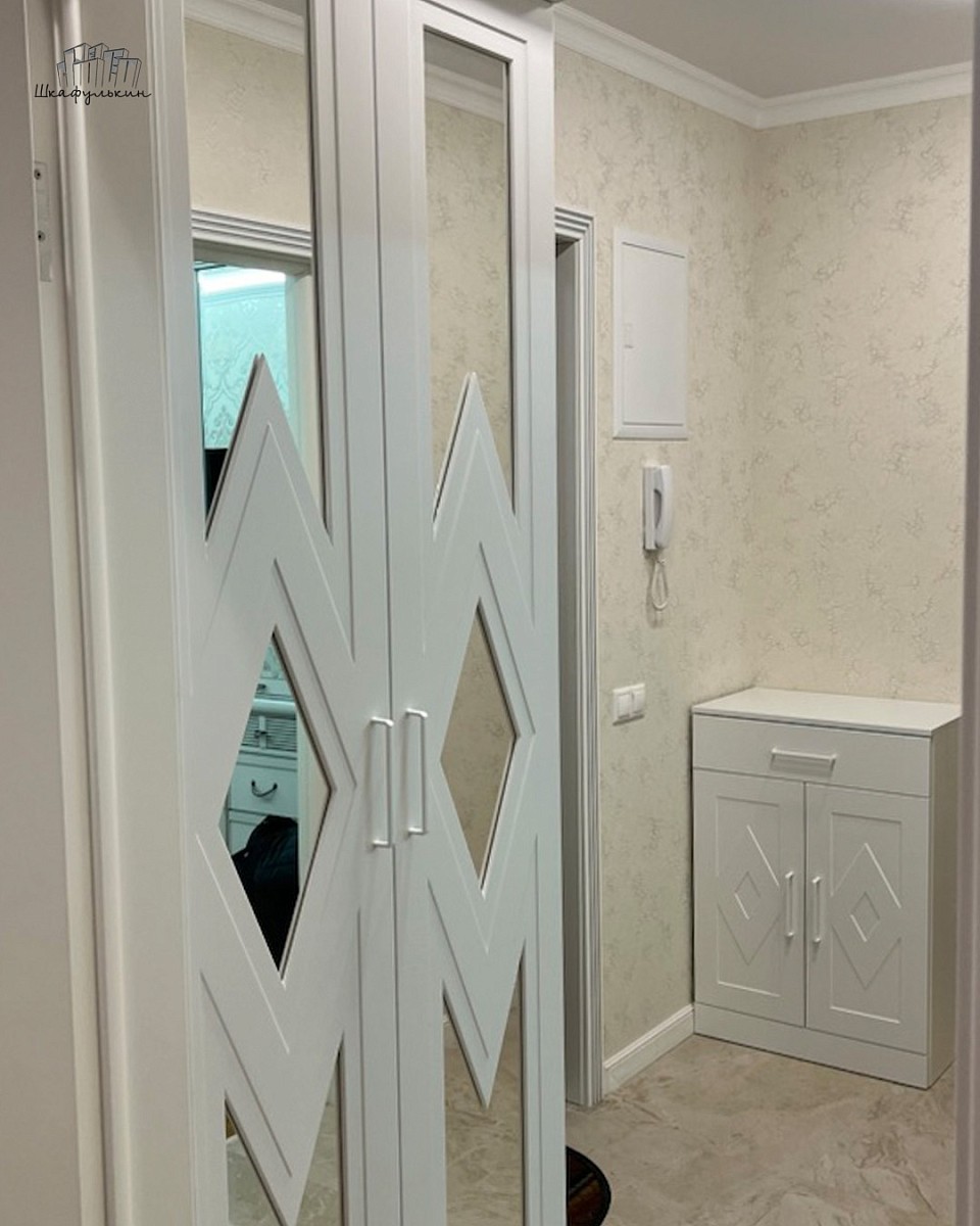 Фасады: МДФ 19 мм/RAL 9003 с зеркалом серебро.