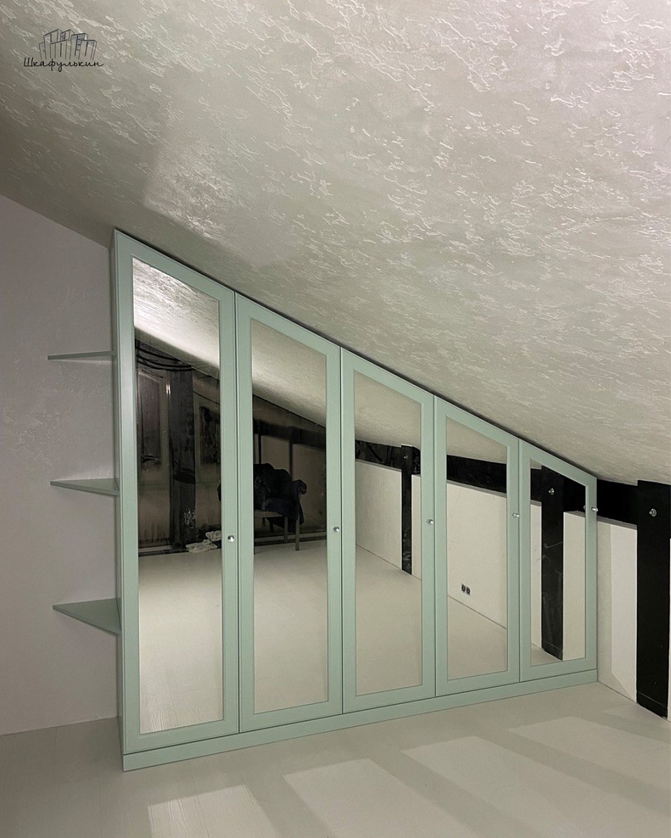 Фасады: МДФ 19 мм/NCS S 1010 G + зеркало серебро.