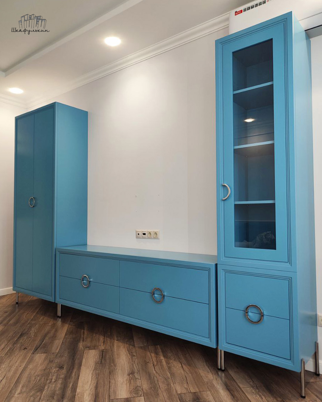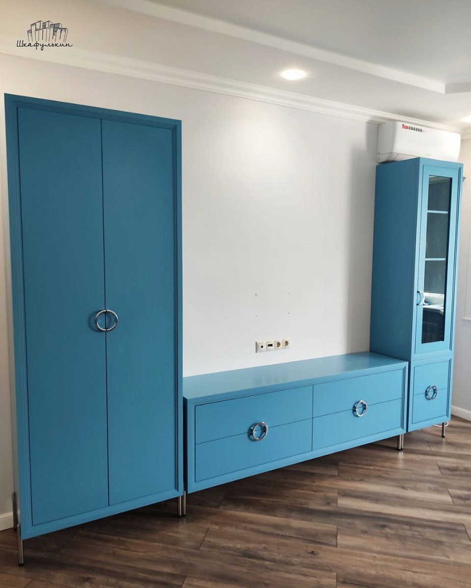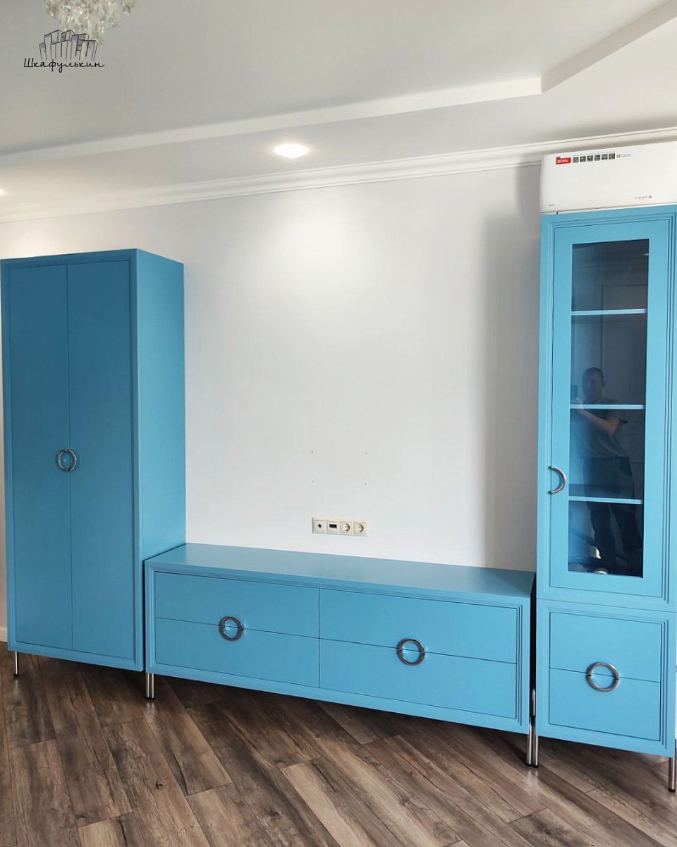 Фасады: МДФ 19 мм/RAL 5024 + стекло.