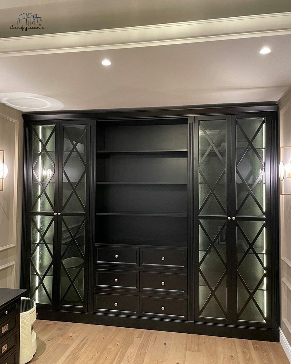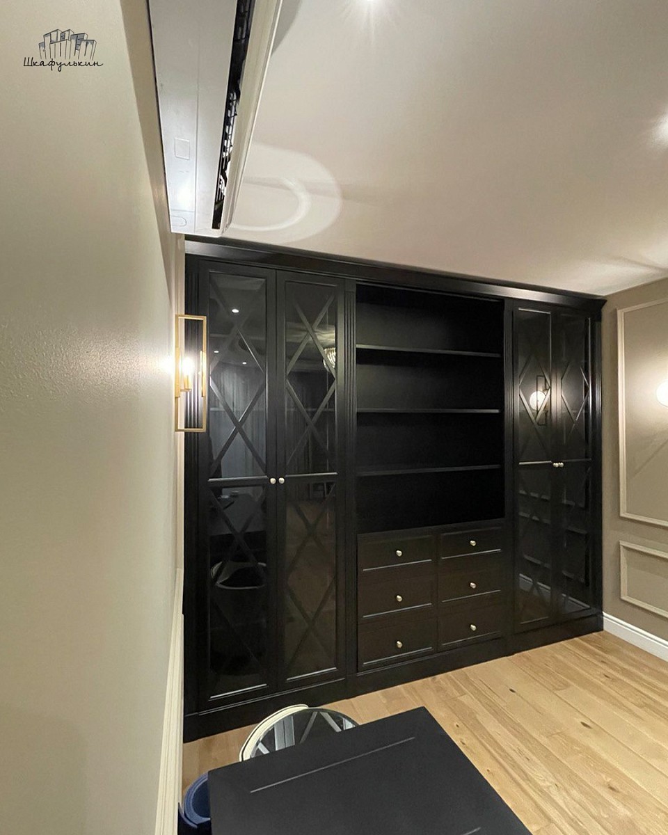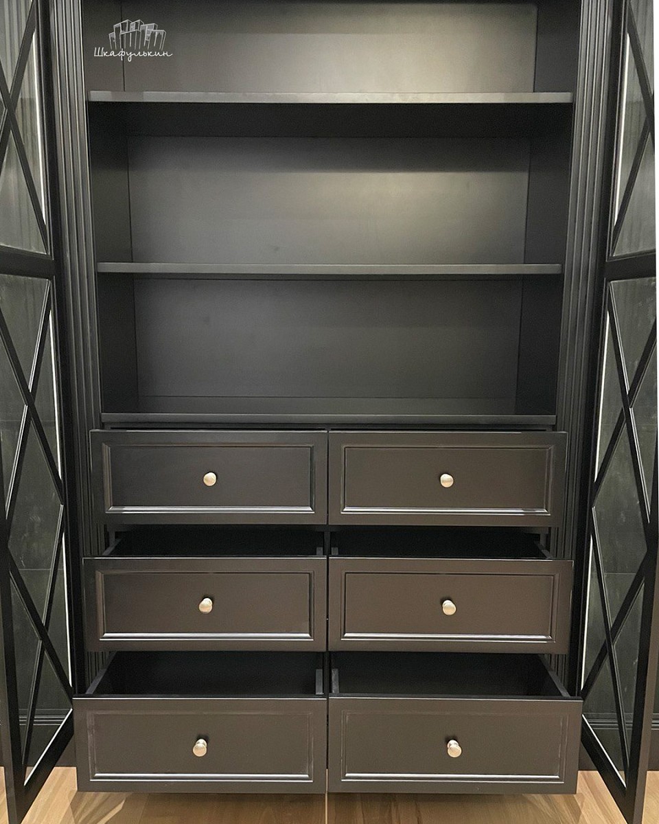 Фасады: МДФ 19 мм/RAL 9005 со стеклом Графит.