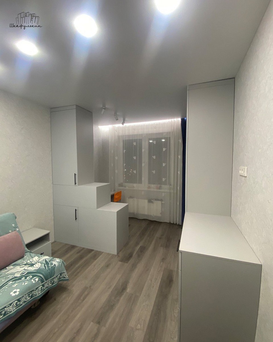 Фасады: МДФ 19 мм/NCS S 2002 B + зеркало с полировкой.