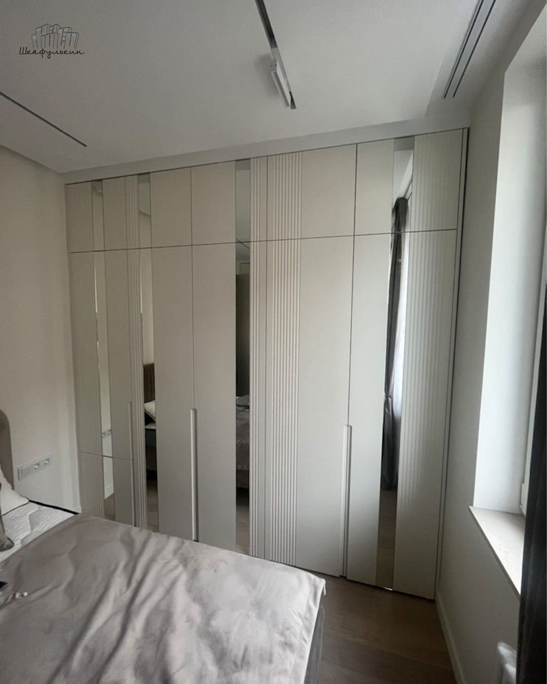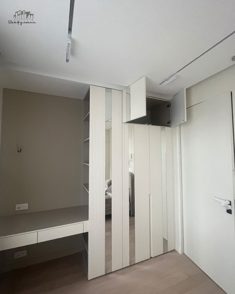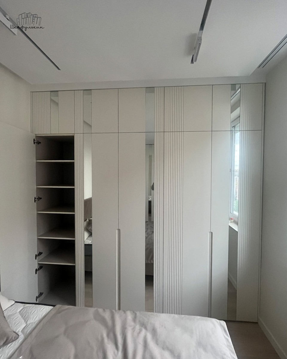 Фасады: МДФ 19 мм/RAL 9010 + зеркало серебро.