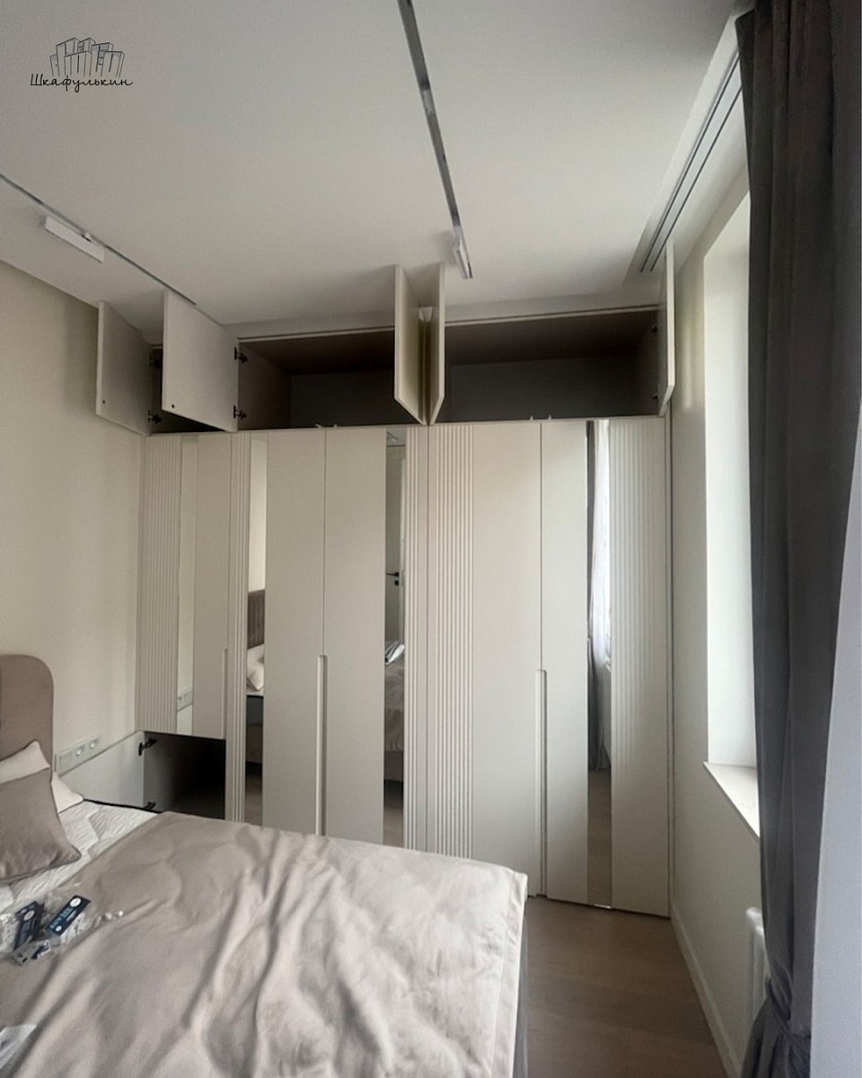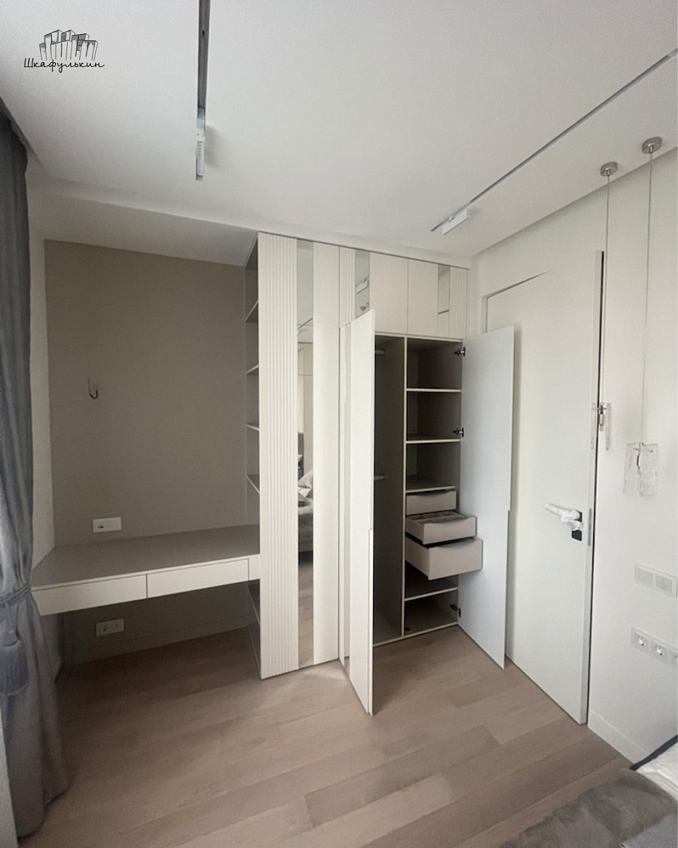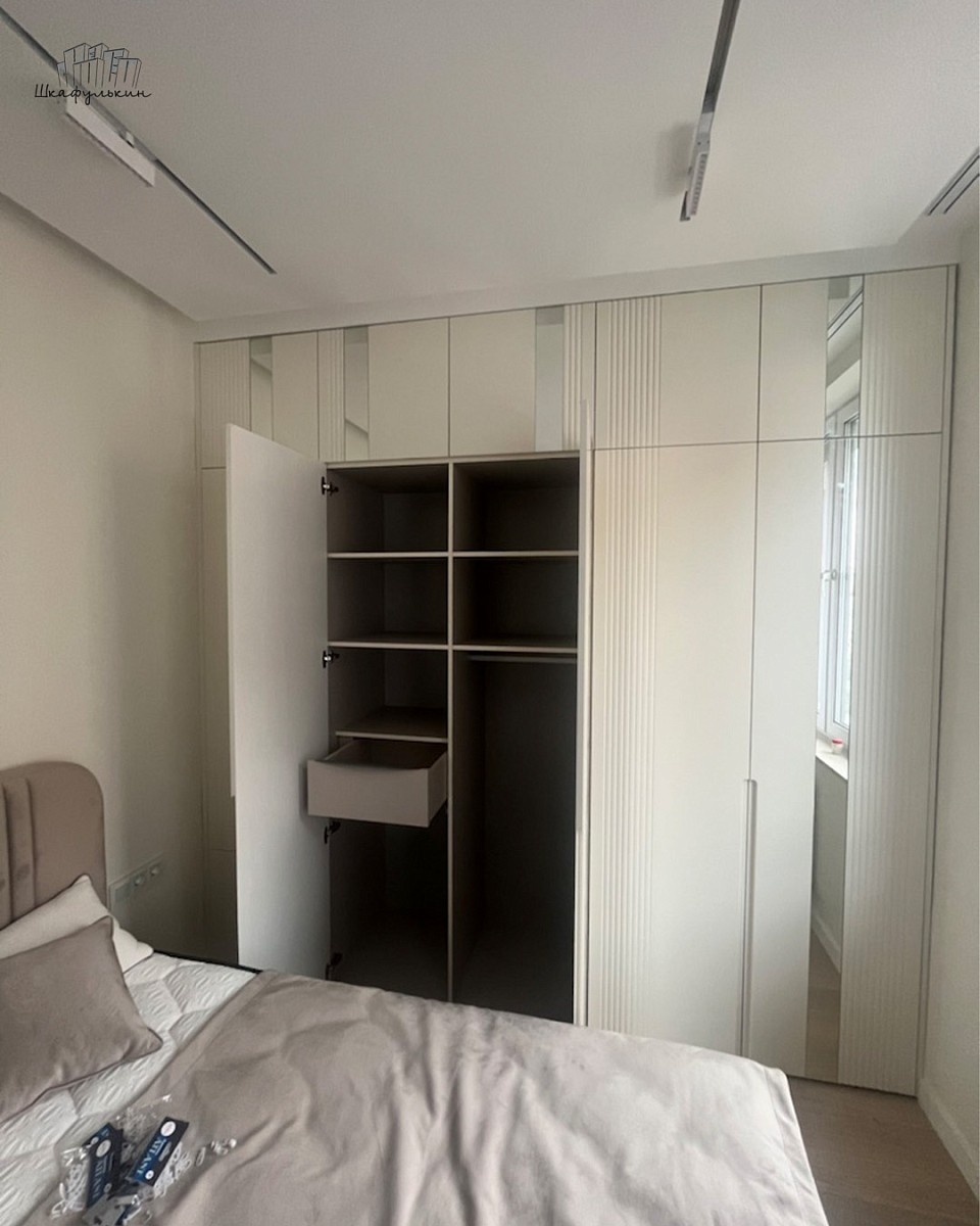 Фасады: МДФ 19 мм/RAL 9010 + зеркало серебро.