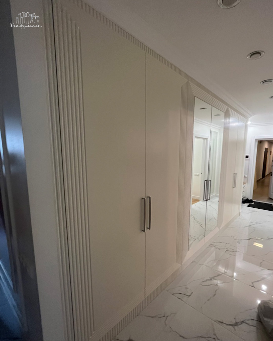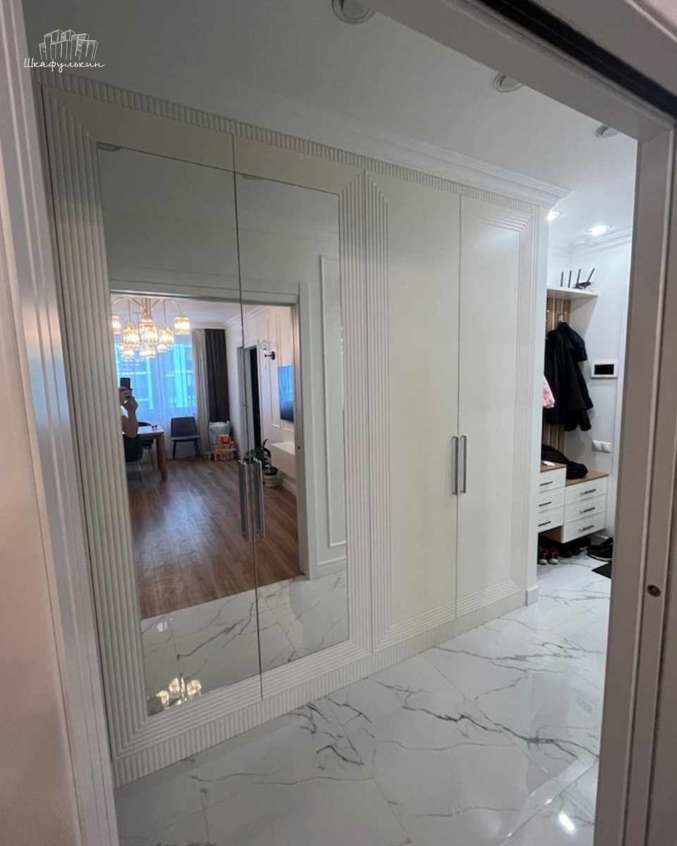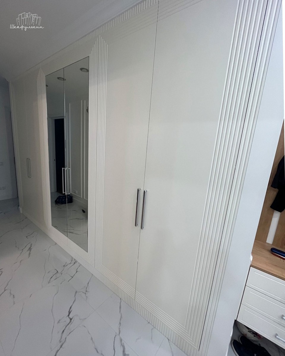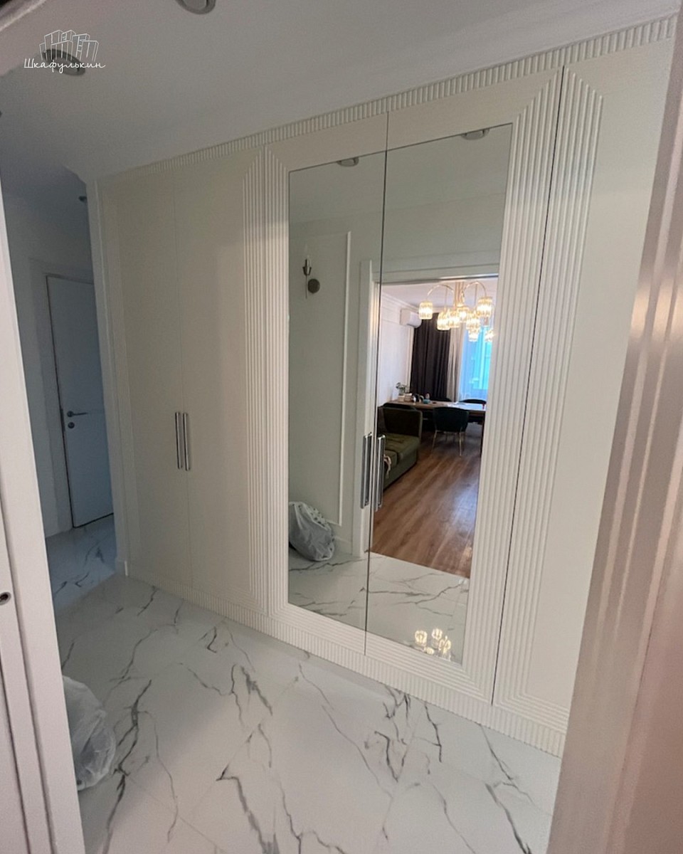 Фасады: МДФ 19 мм/RAL 9010 + зеркало серебро.