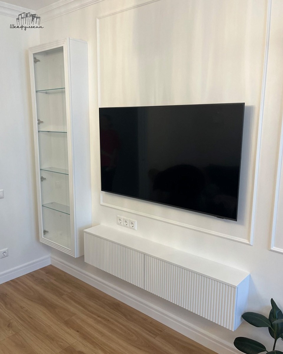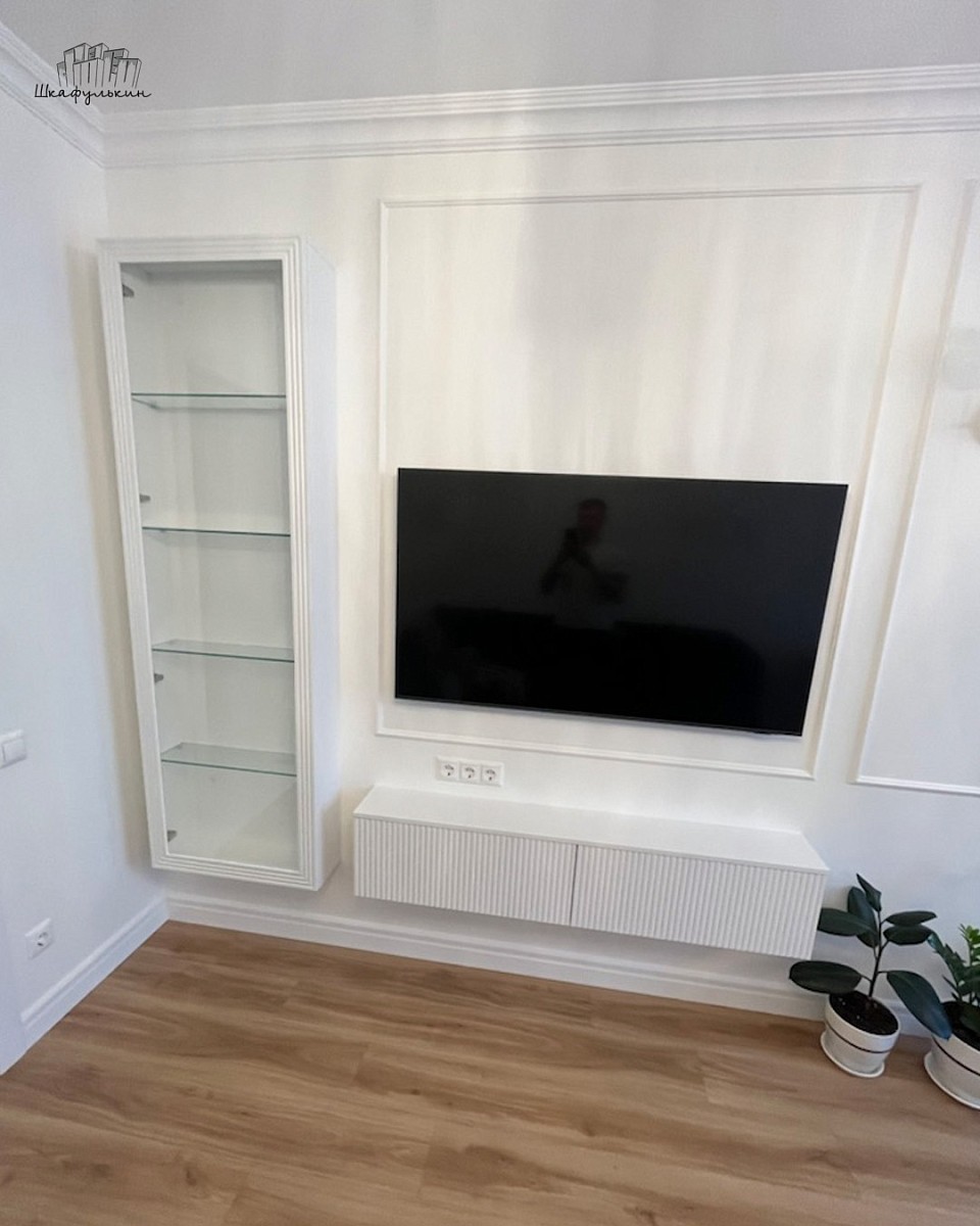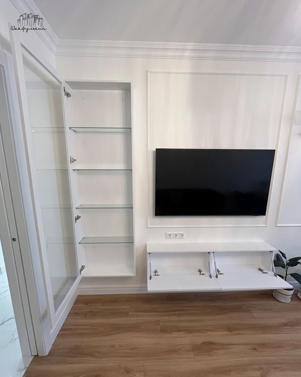 Фасады: МДФ 19 мм/RAL 9003 + стекло.