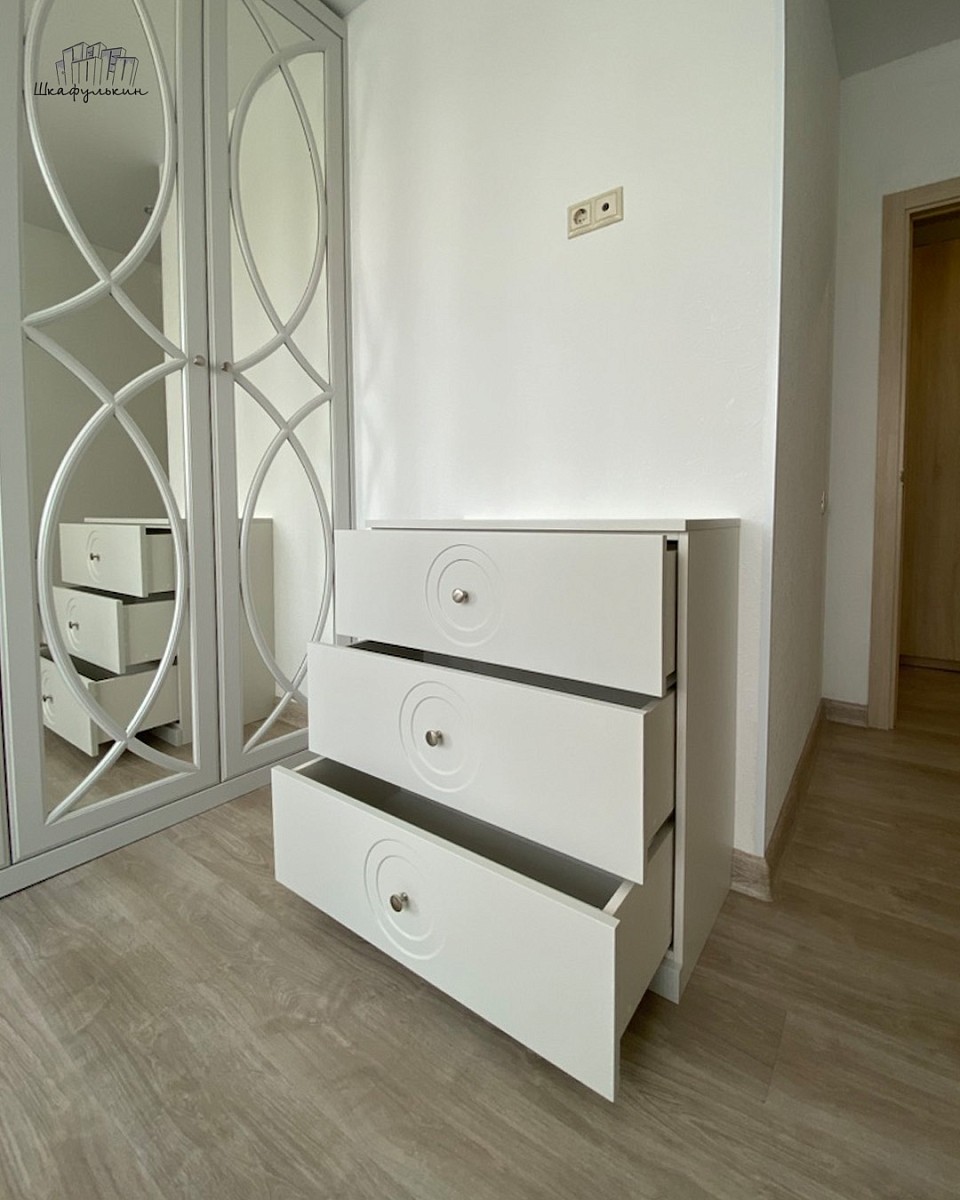 Фасады: МДФ 19 мм/NCS S 1500 N + зеркало серебро.