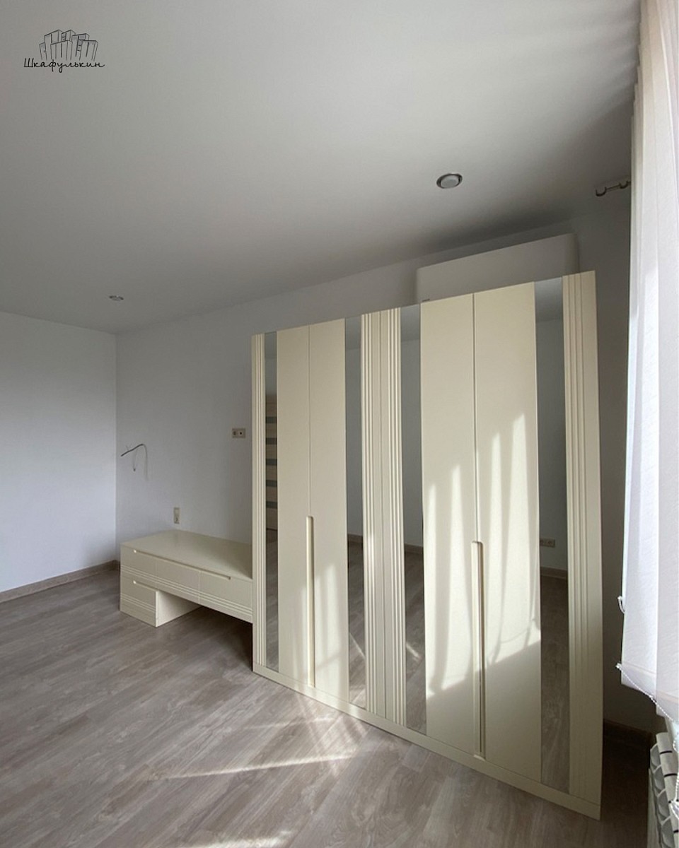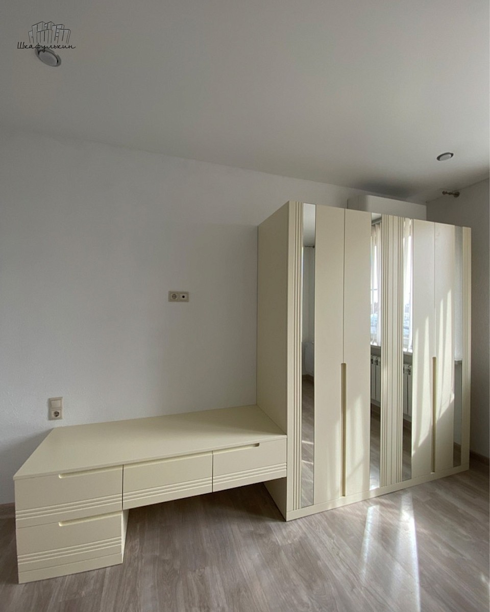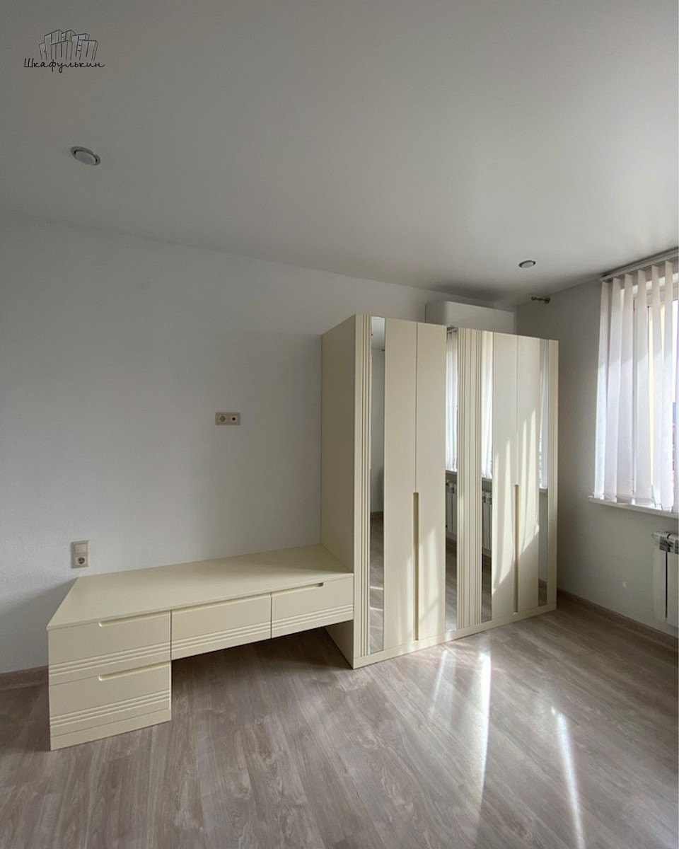 Фасады: МДФ 19 мм/NCS S 0907 - Y10R + зеркало серебро.