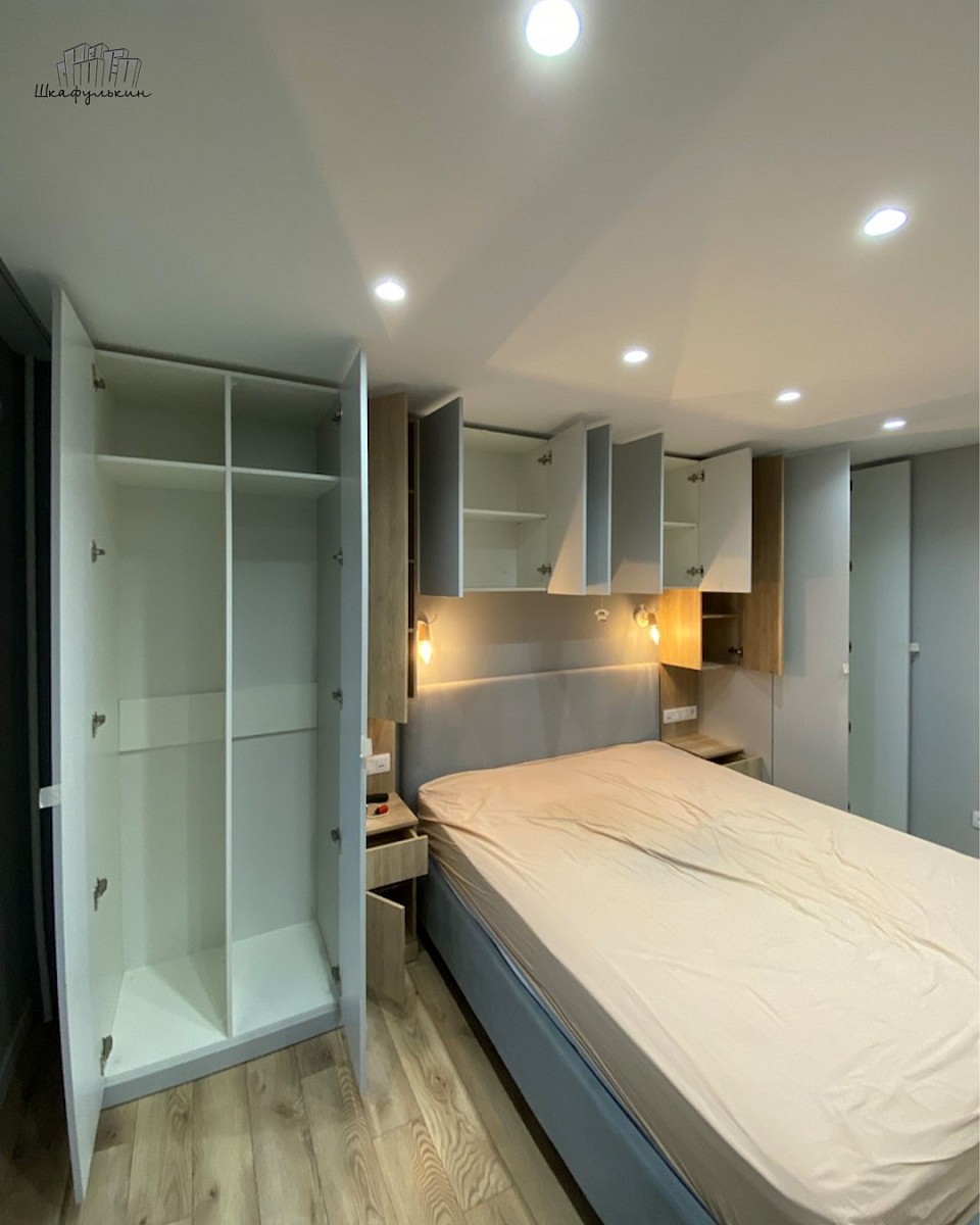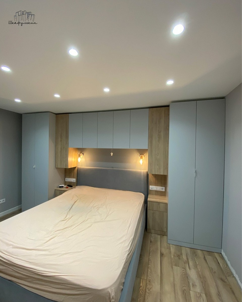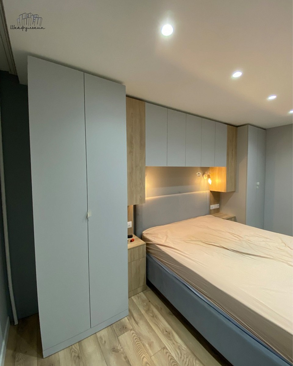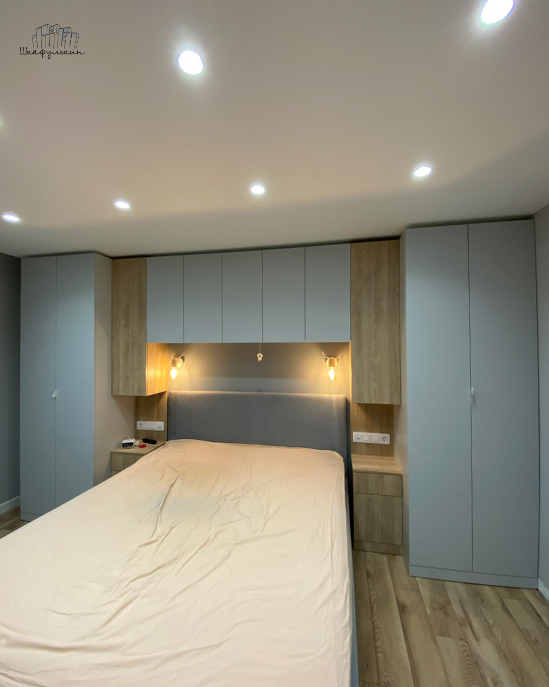 Фасады: ЛДСП Egger 16 мм/МДФ EVOGLOSS 18 мм светло-серый.