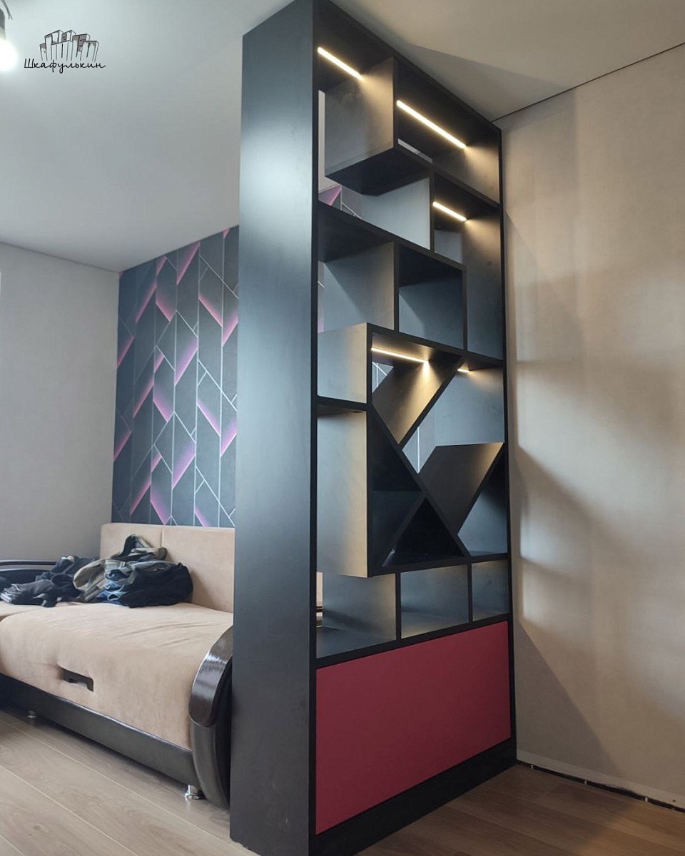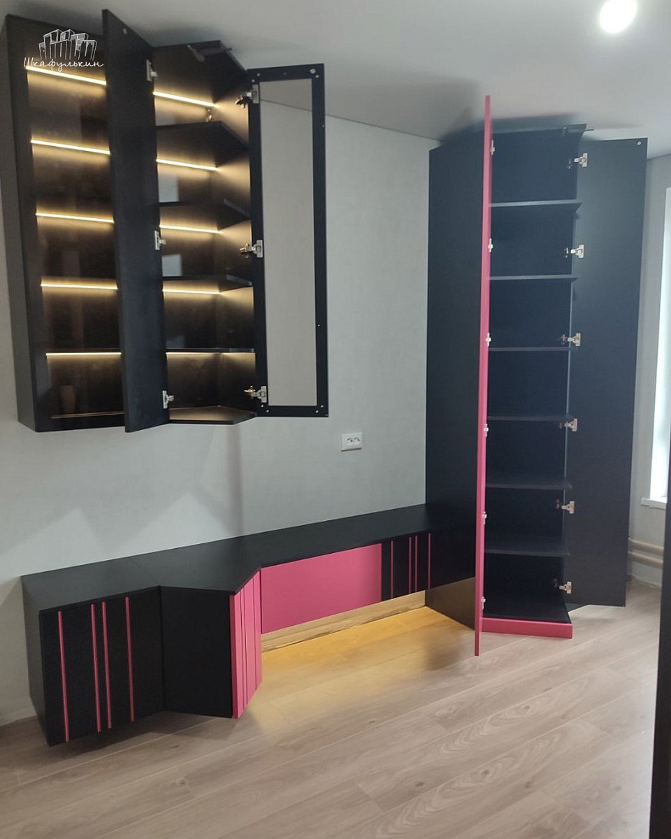 Корпус: ЛДСП Egger 16 мм/МДФ 19 мм/NCS S 2060 R10B/NCS S 9000 N.