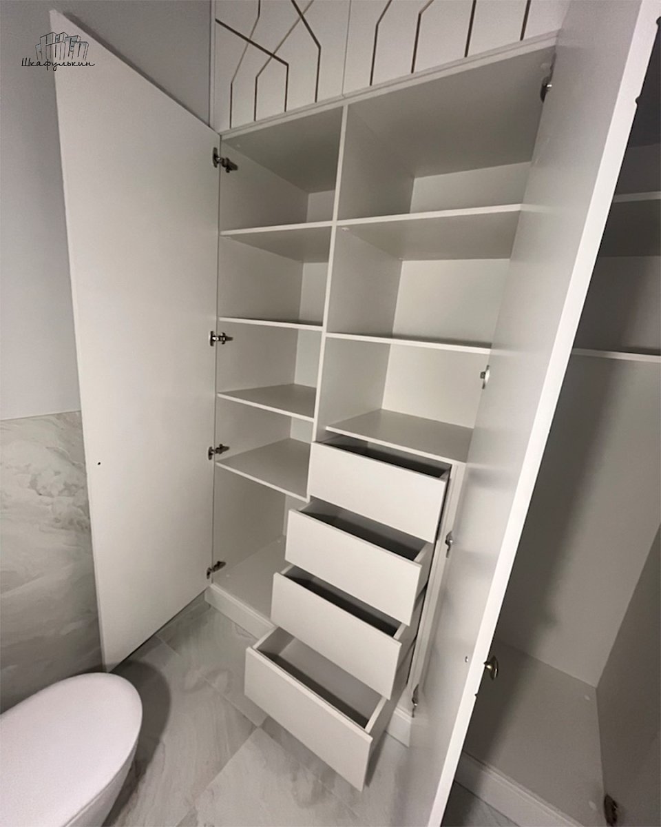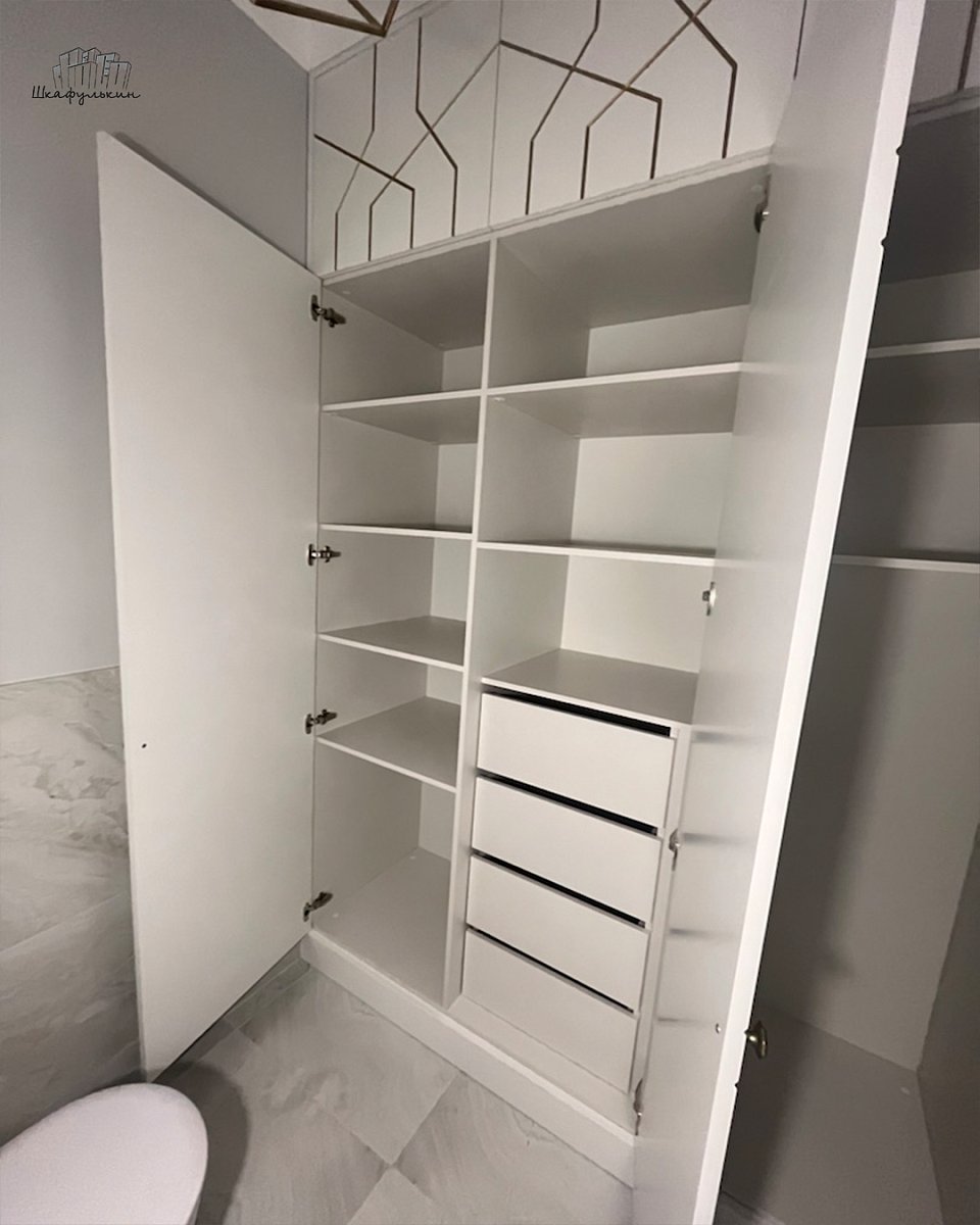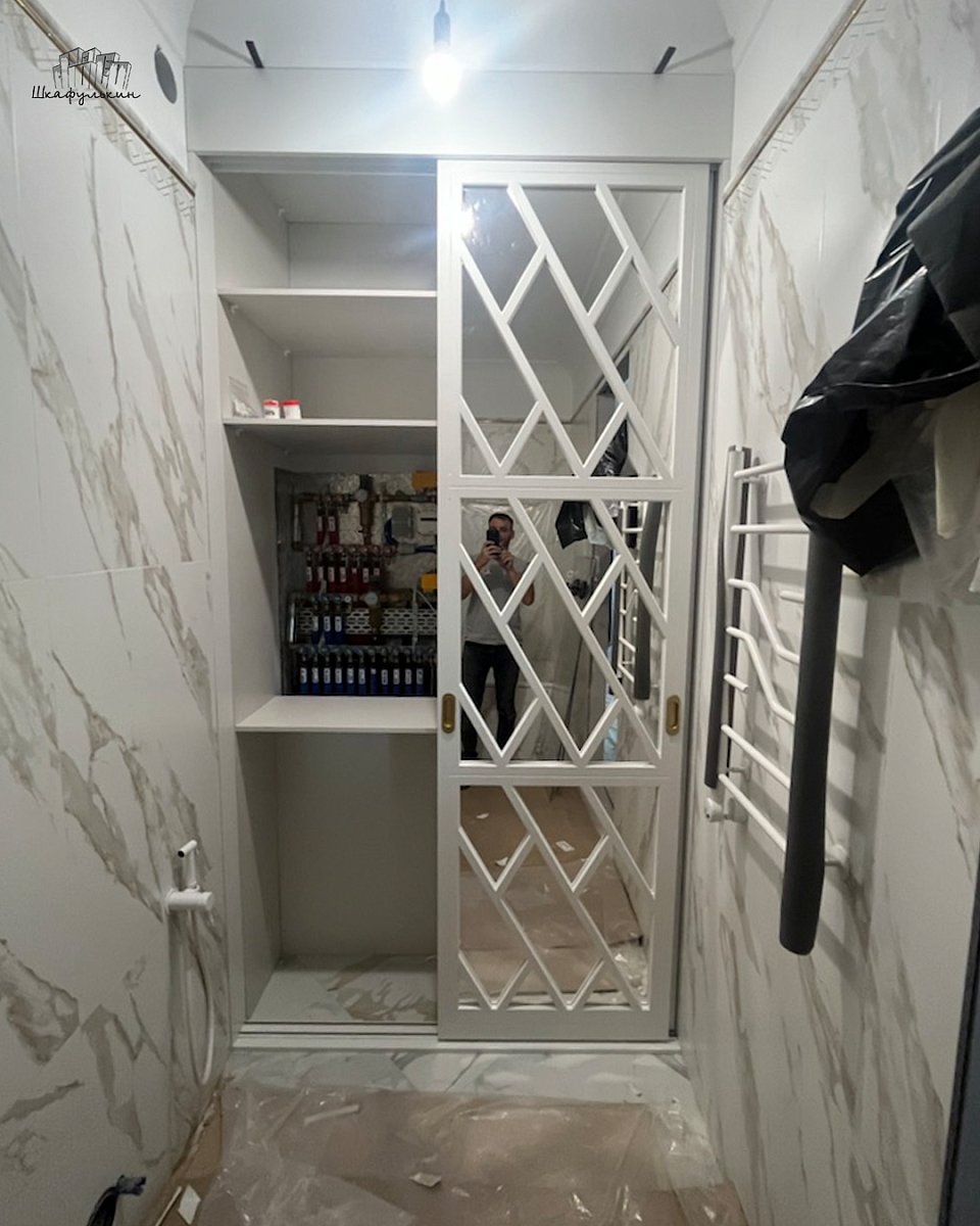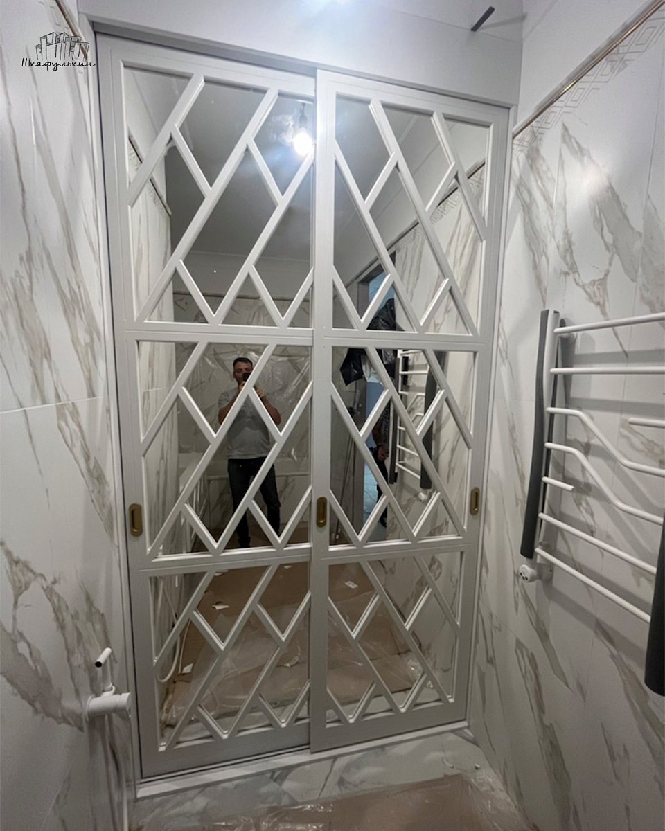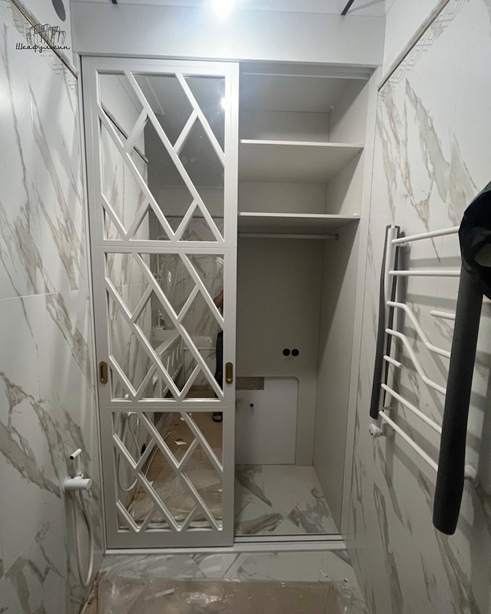 Двери-купе: МДФ 19 мм/RAL 9003 + зеркало серебро.