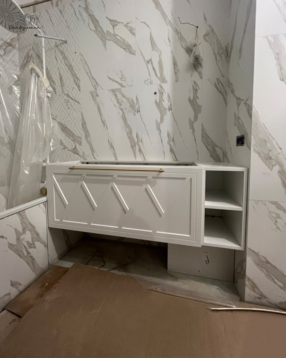 Фальшпанель и цоколь: МДФ 19 мм/RAL 9010 с патиной.
