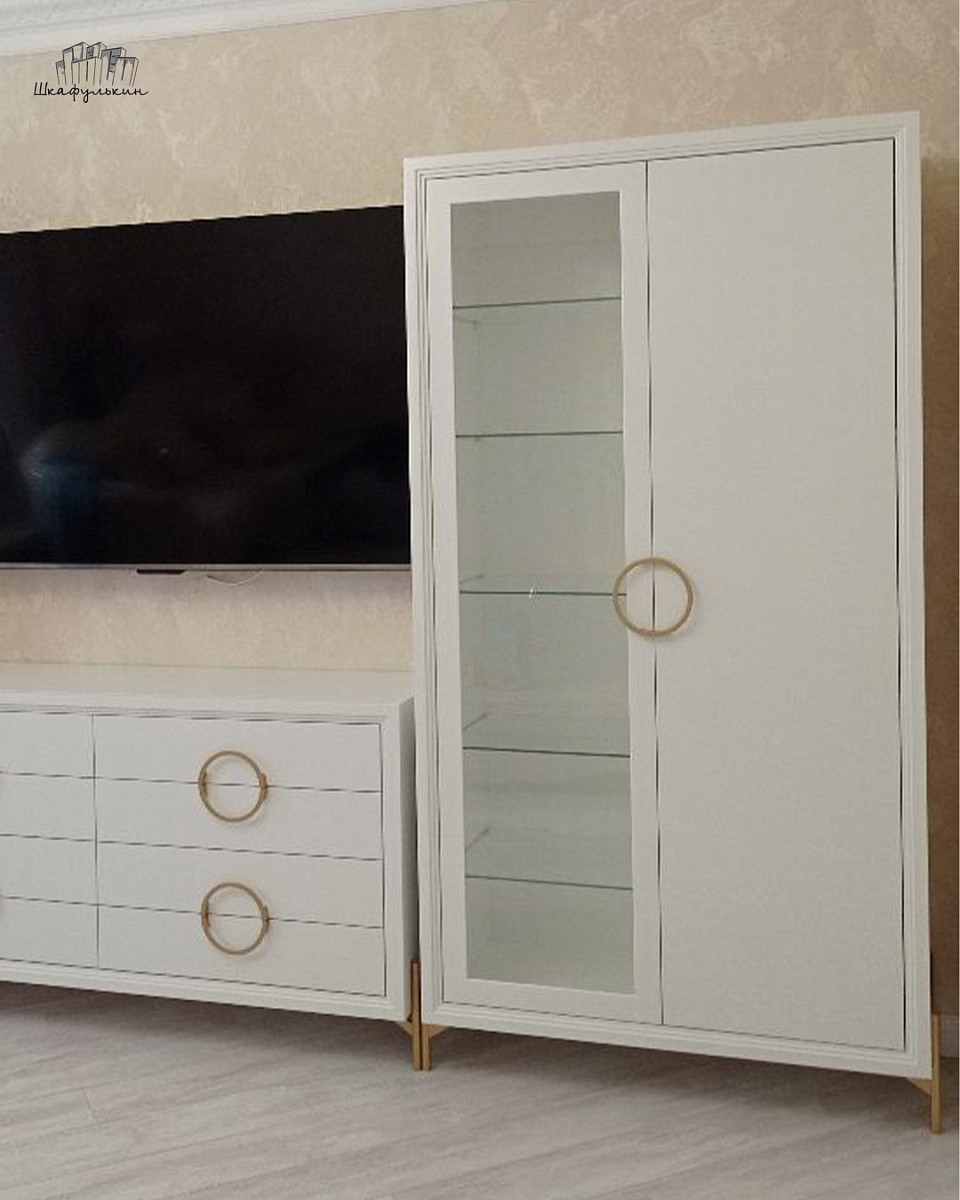 Фасады: МДФ 19 мм/RAL 9003 со стеклом.