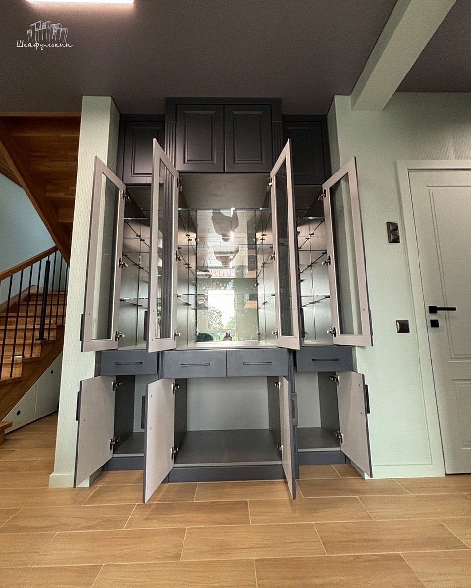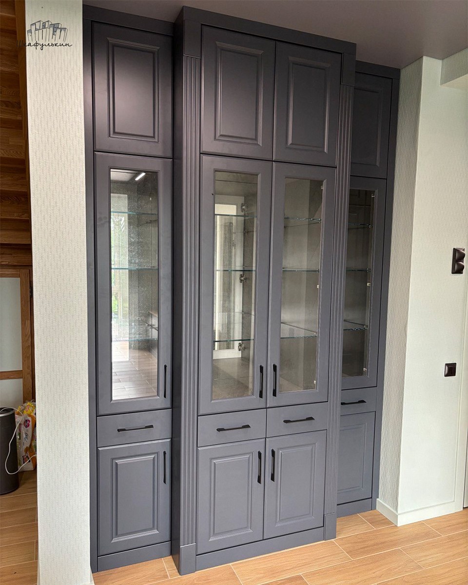Фасады: МДФ 19 мм/NCS S 7005 R80B со стеклом.