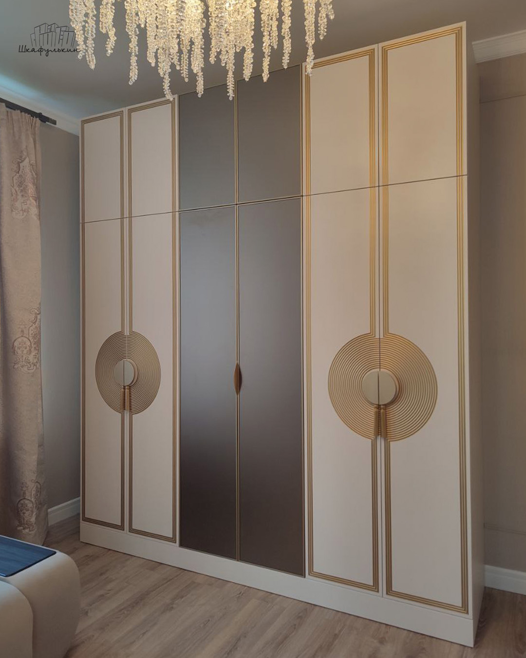 Фасады: AL профиль с зеркалом сатин бронза.