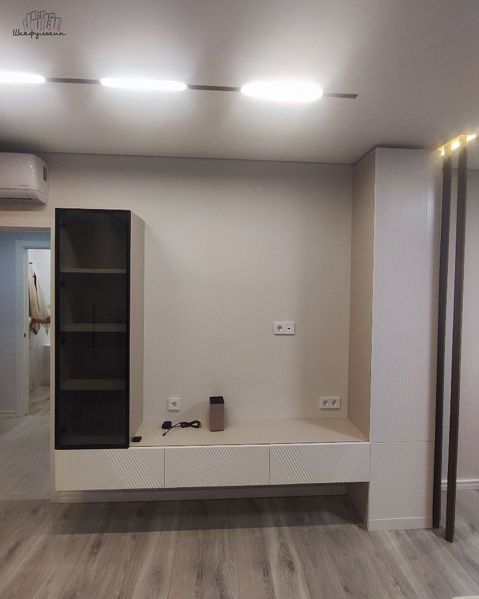 Фасады: МДФ 19 мм/RAL 9001 с зеркалом.
