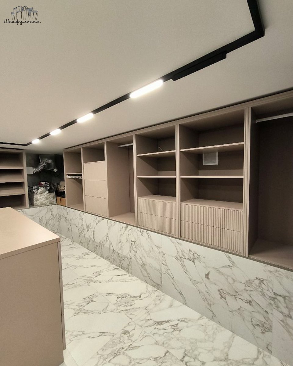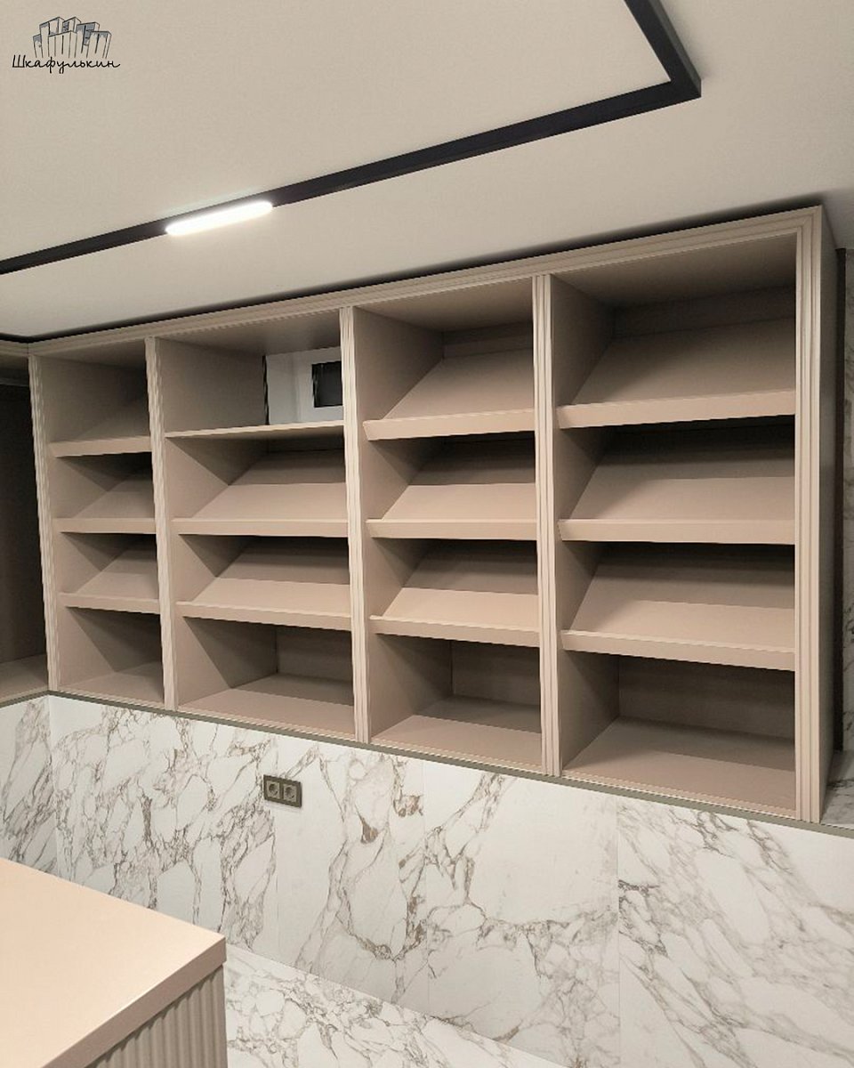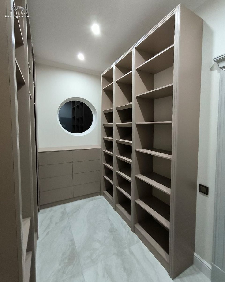 Встроенные стеллажи в гардеробную