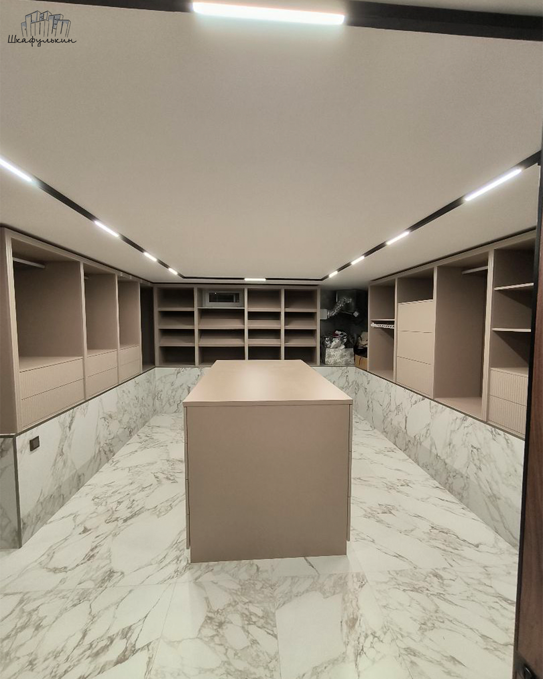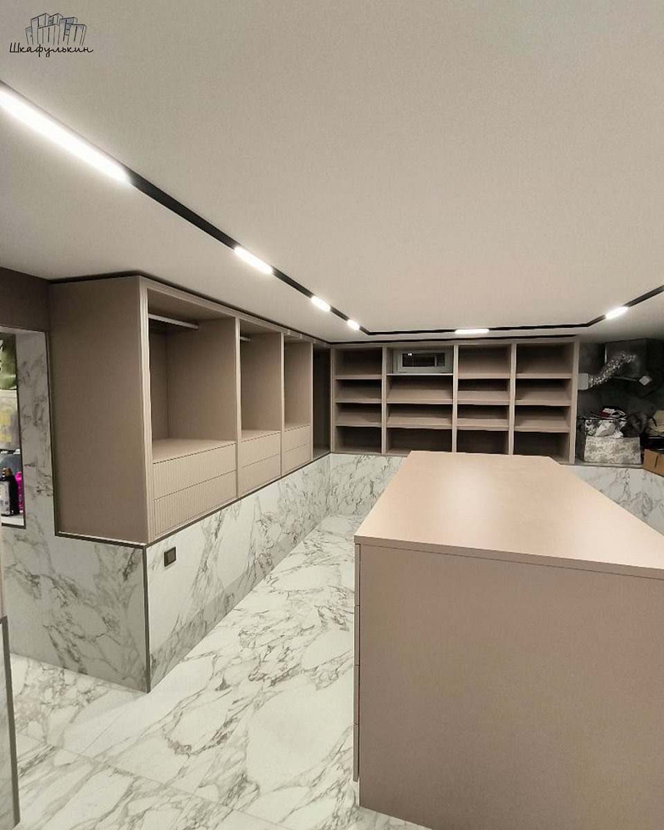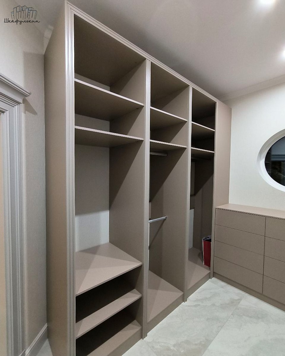 Встроенные стеллажи в гардеробную