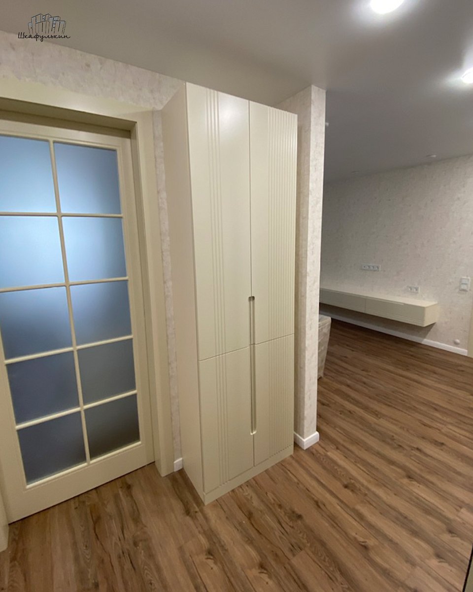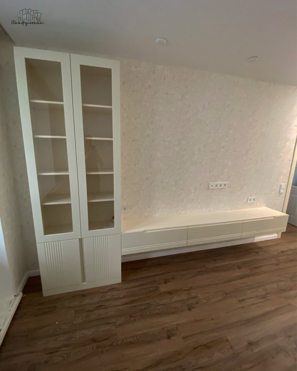 Фасады: МДФ 19 мм/RAL 1013 со стеклом.