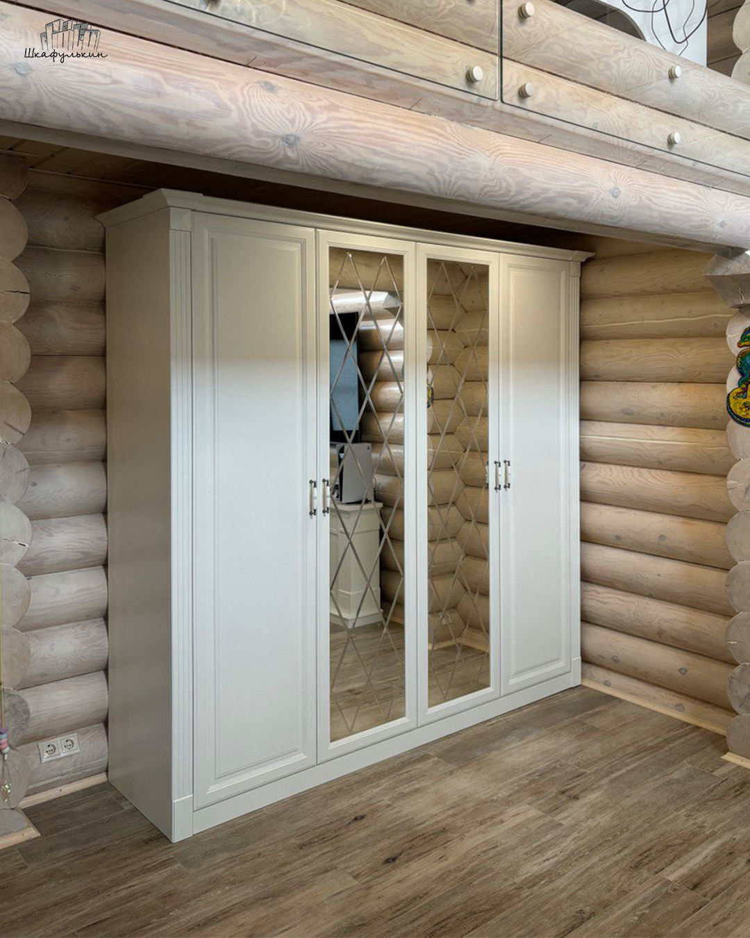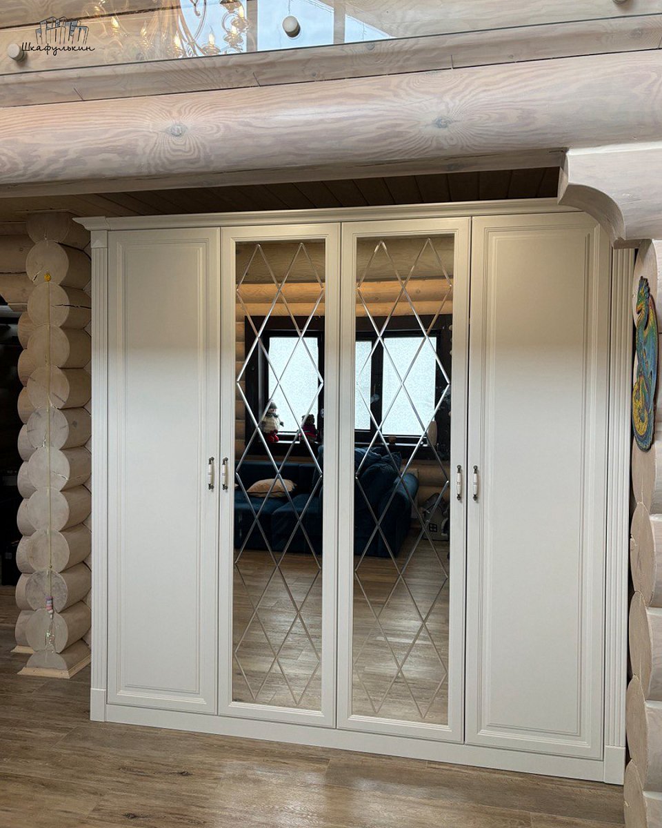 Фасады: МДФ 19 мм/NCS S 0502 Y с зеркалом с гравировкой.