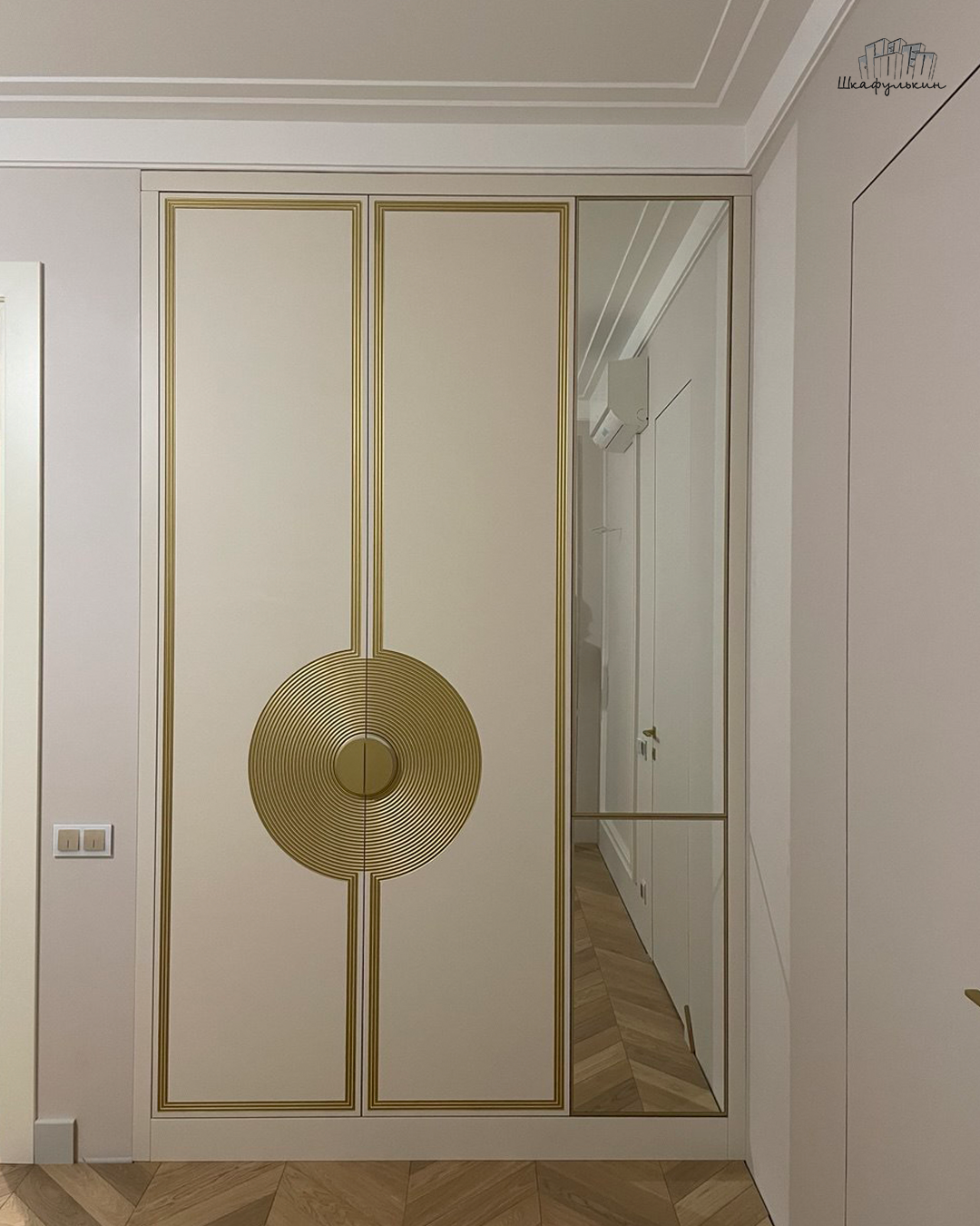 Фасады: МДФ 19 мм/RAL 9010 с сатинированным зеркалом.