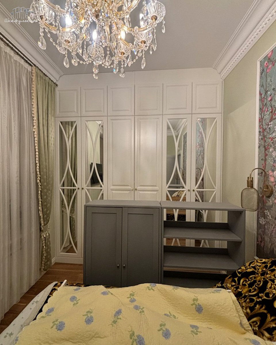 Фасады: МДФ 19 мм/RAL 9016 с зеркальной вставкой.