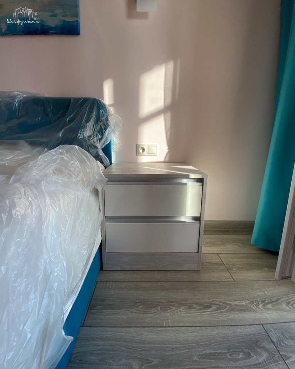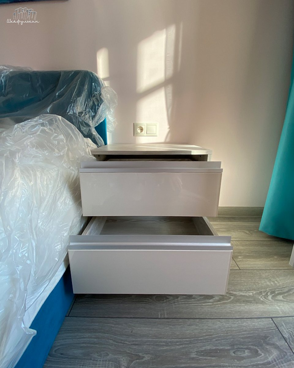 Фасады: ЛДСП Egger 16 мм со стеклом/RAL 9001.