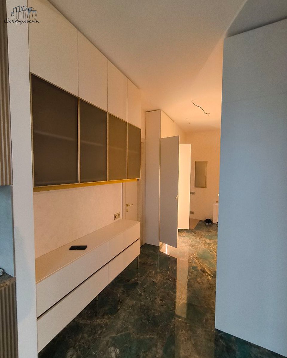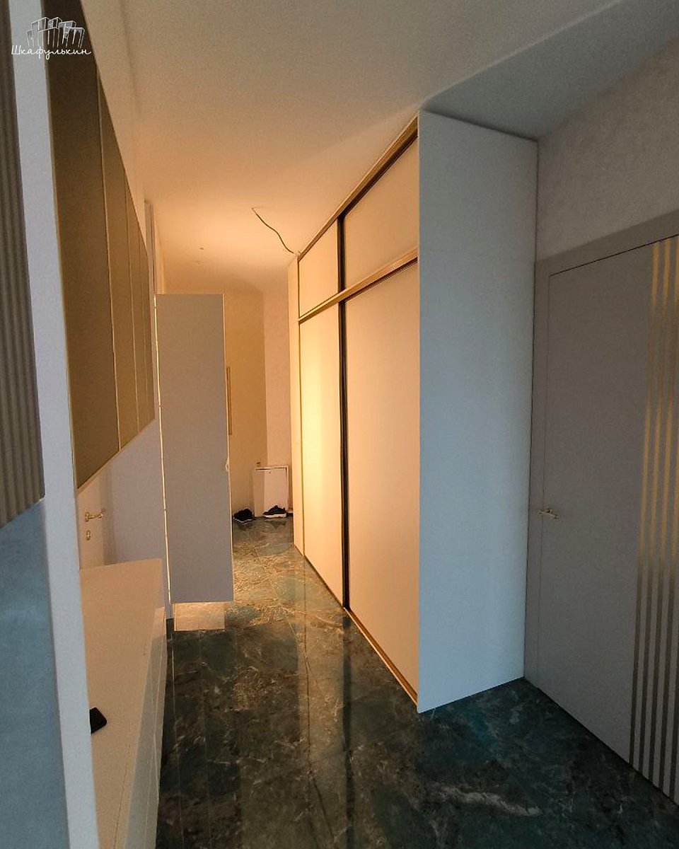 Подсветка: врезная, профиль серебро, свет тёплый.