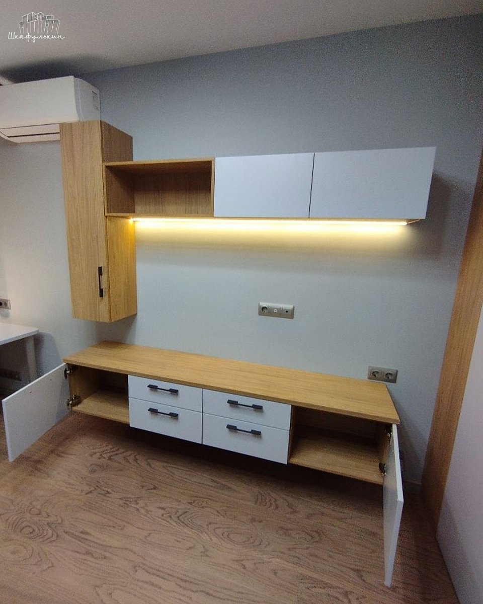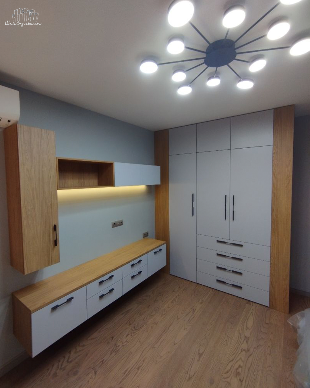 Фасады: ЛДСП Egger 16 мм/МДФ 16 мм/NCS S 2002 R50B.