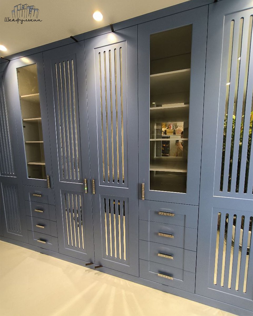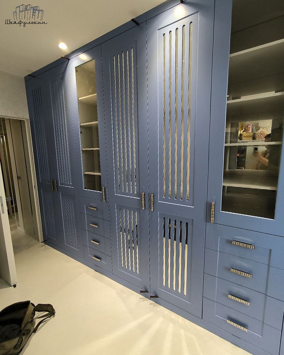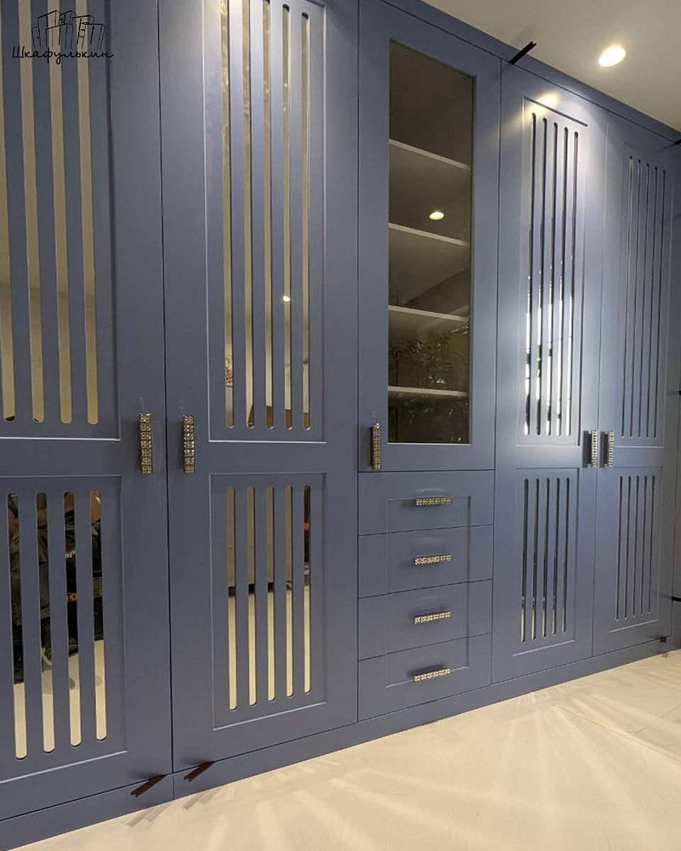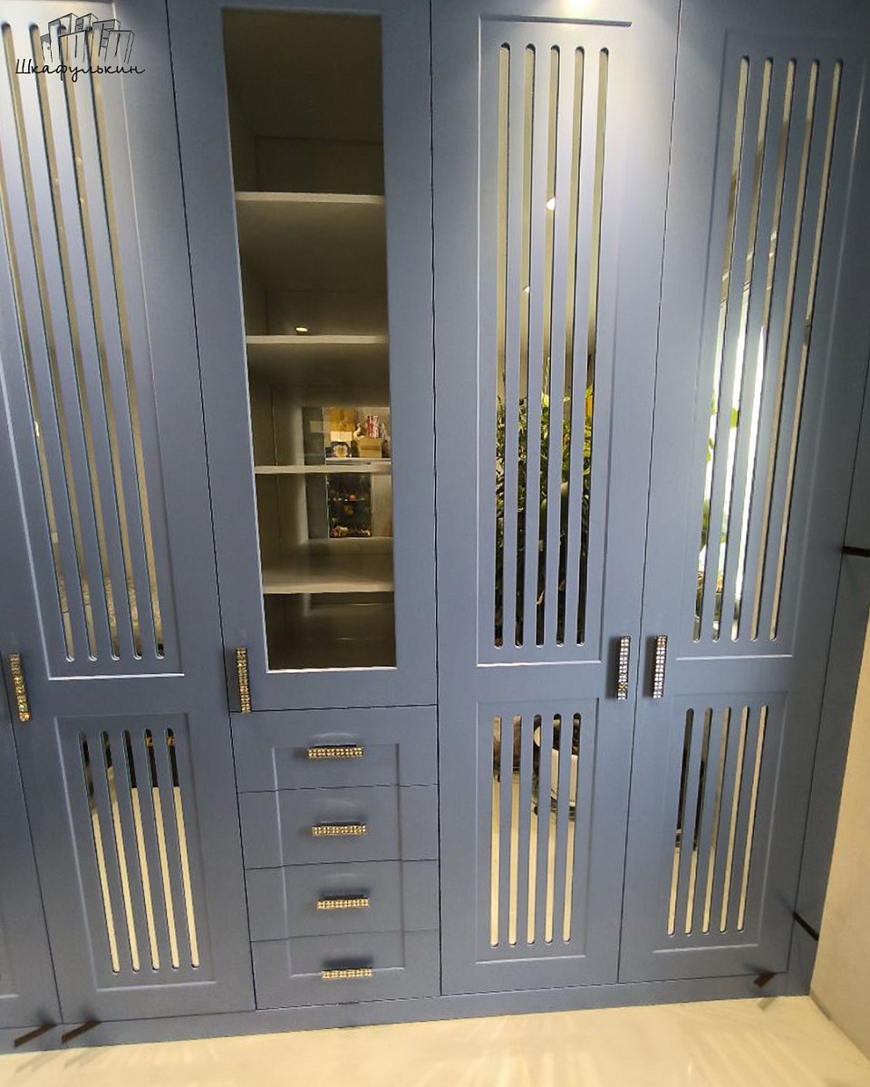 Фасады: МДФ 19 мм/NCS S 2040-R80B, вставка зеркало.