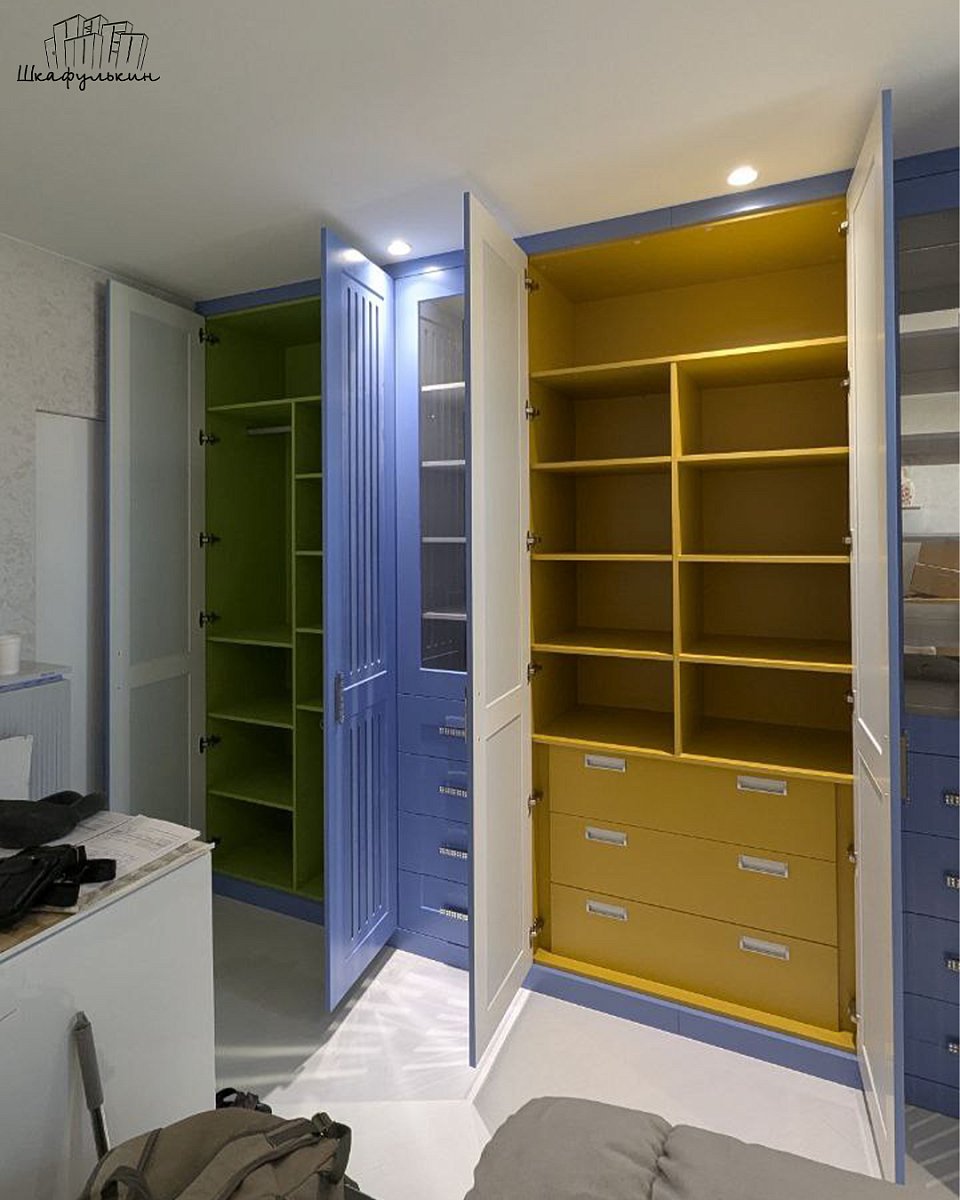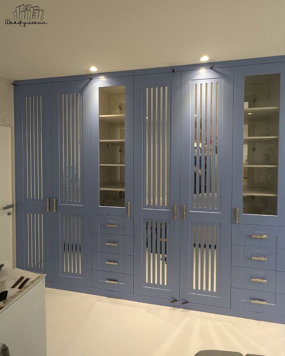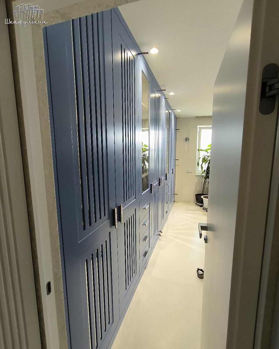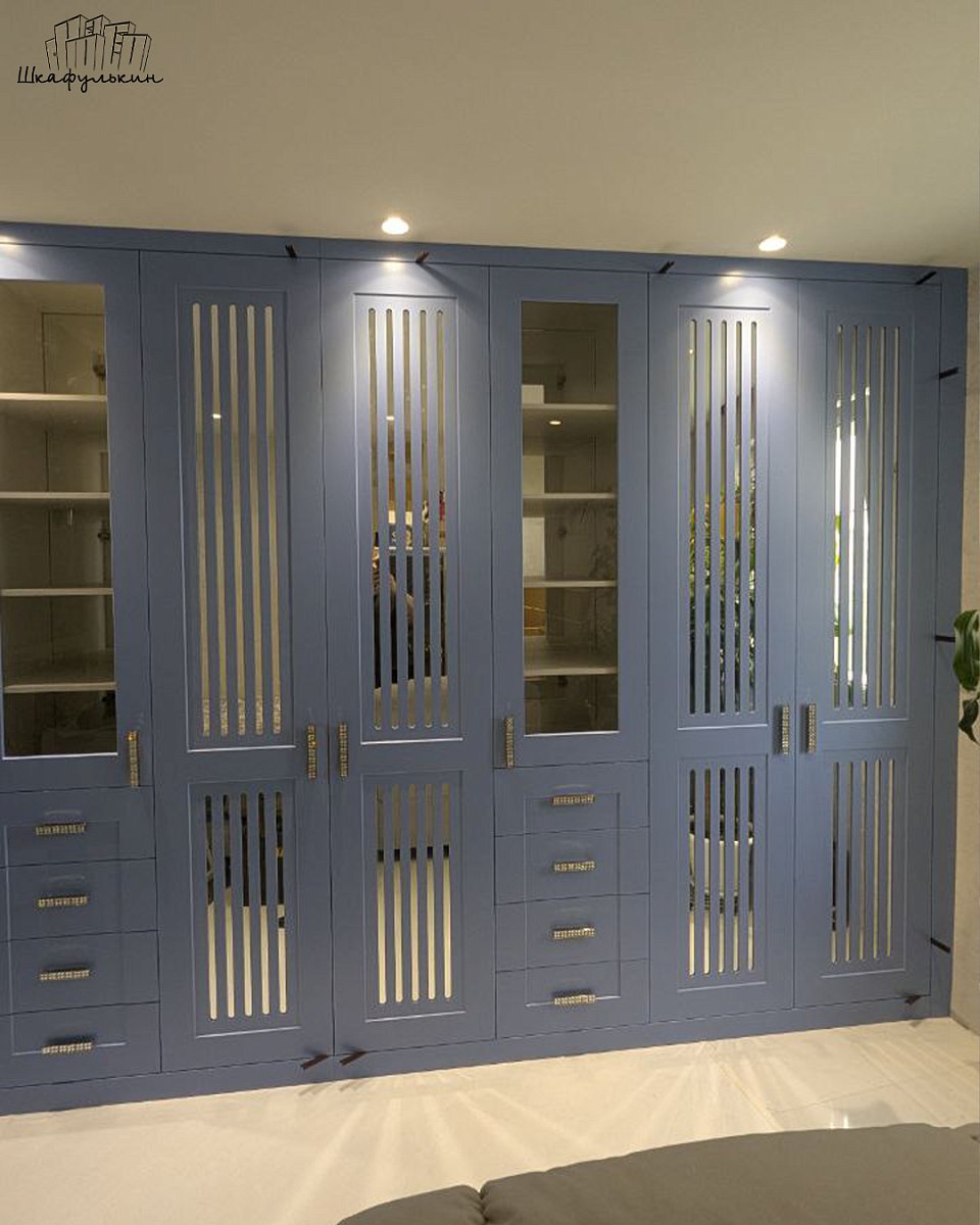 Фасады: МДФ 19 мм/NCS S 2040-R80B, вставка зеркало.