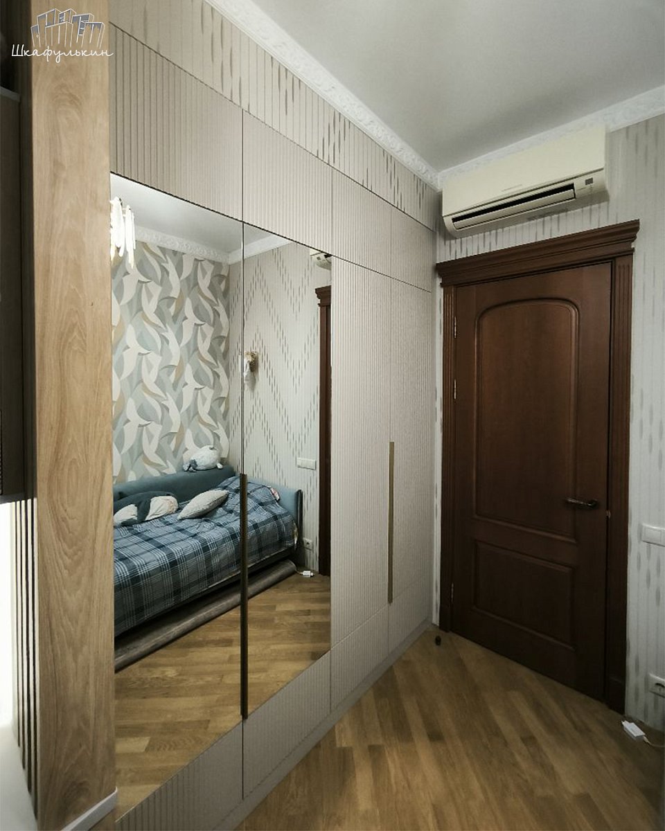 Фасады: МДФ 19 мм/NCS S 2005 Y50R + наклейка зеркало.