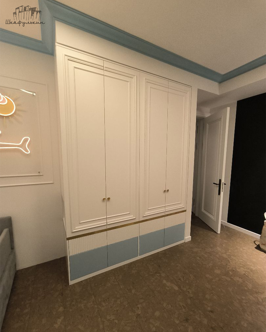 Фасады: МДФ 19 мм/NCS S 0500 N, молдинг.