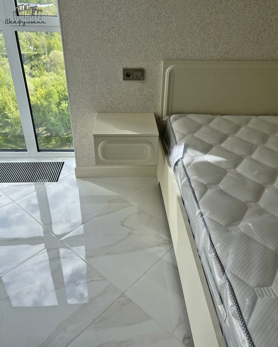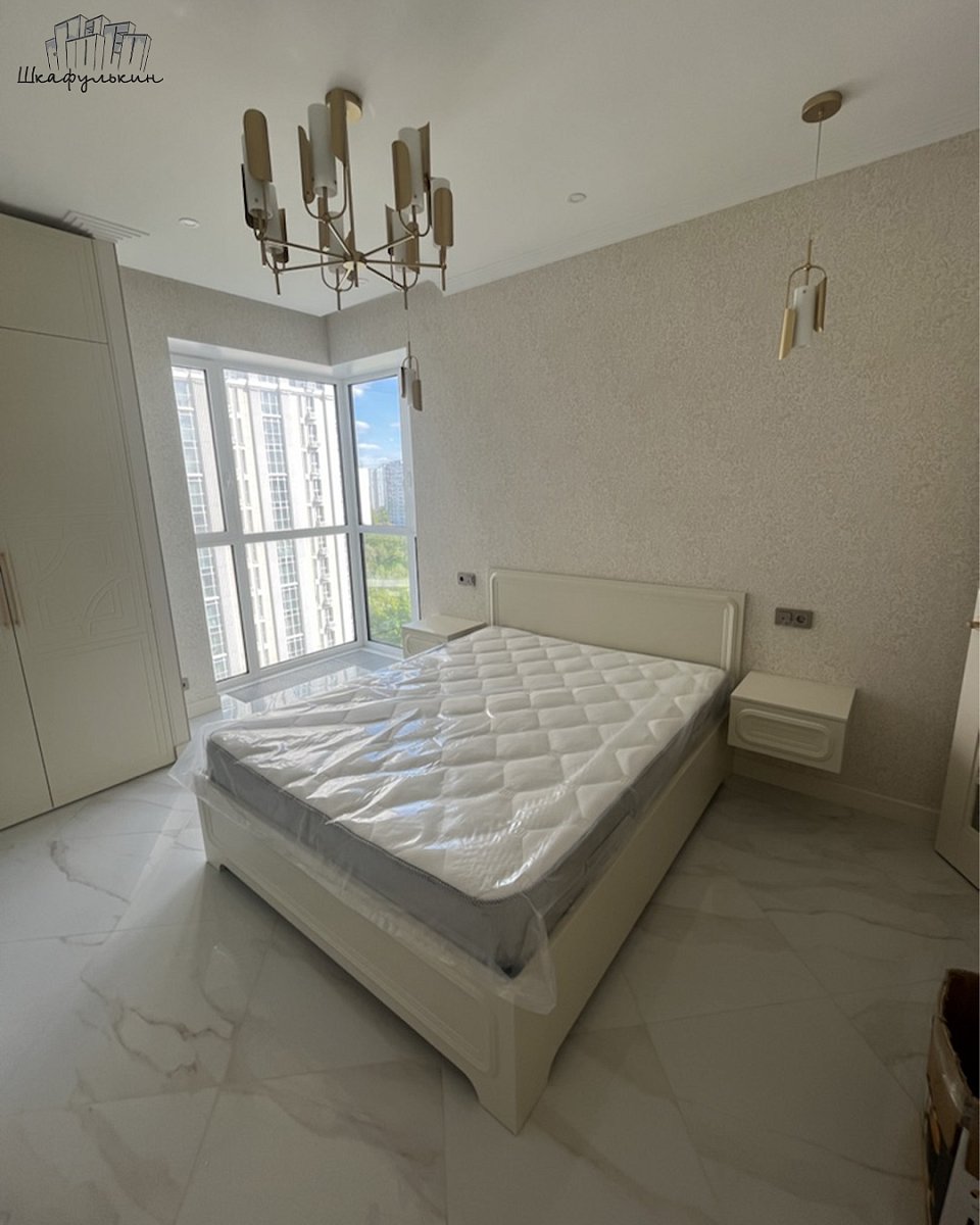 Изголовье: МДФ 25 мм/RAL 1013 + молдинг.