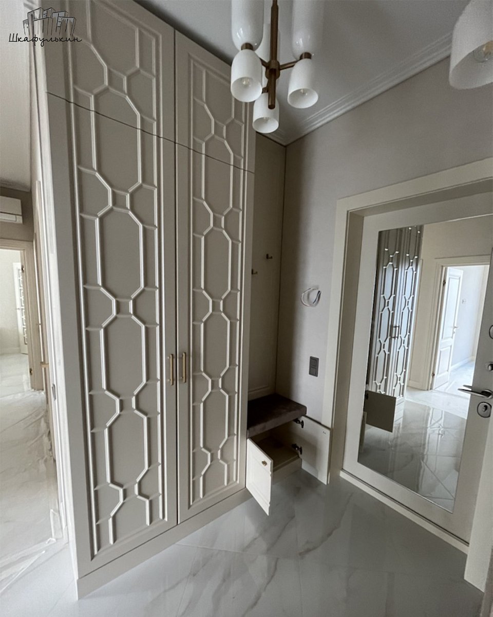 Фасады: МДФ 19 мм/RAL 1013 + молдинг.