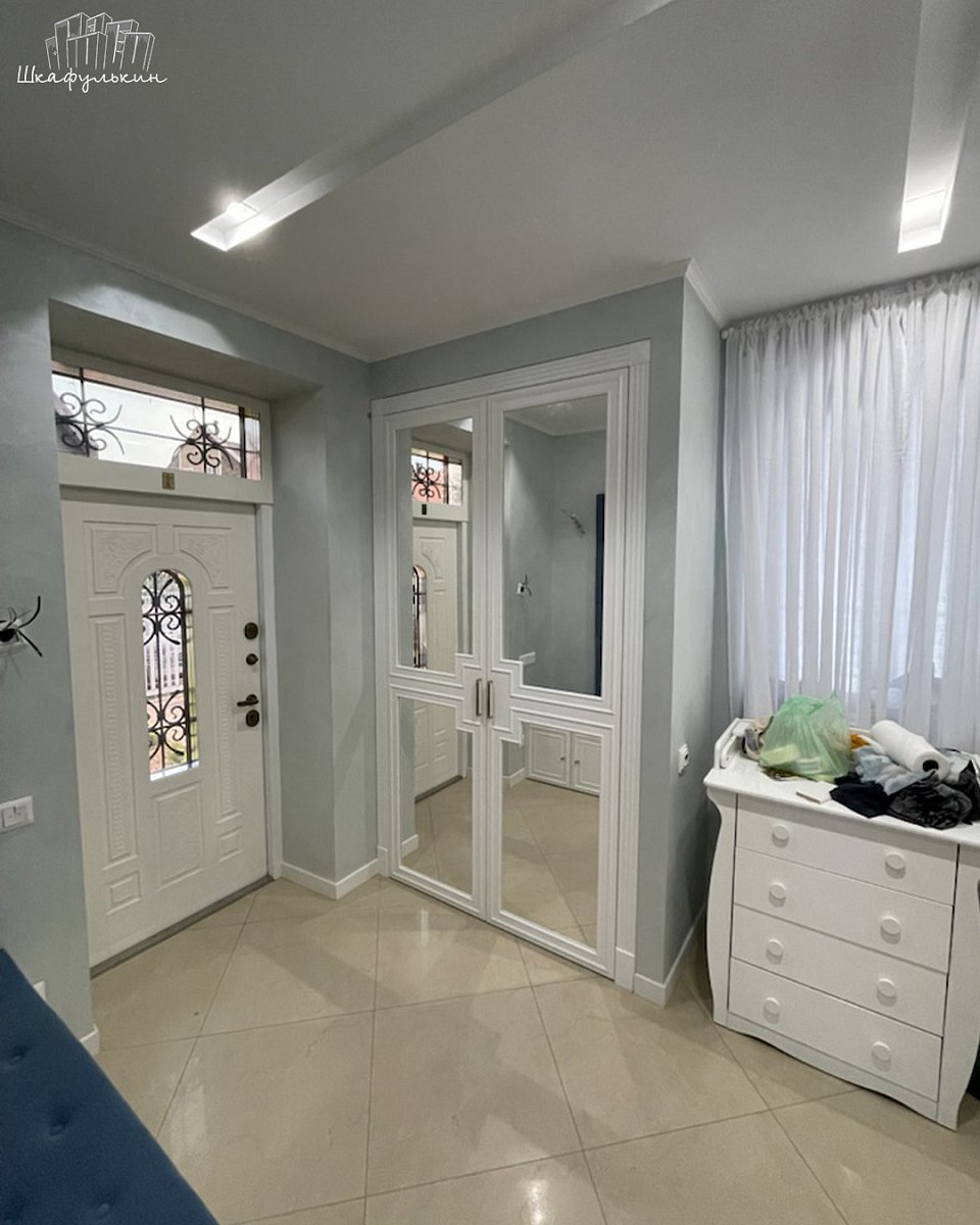 Фасады: МДФ 19 мм/NCS S 0300 N + молдинг, зеркало.
