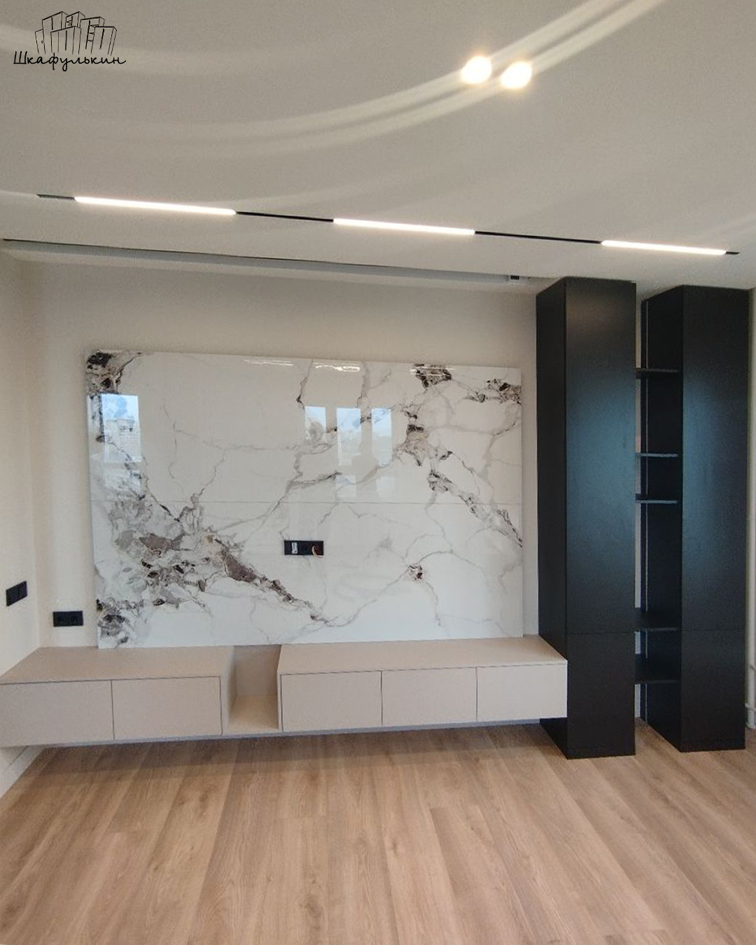 Подсветка: врезная, 5.2 м., профиль чёрный, свет тёплый.