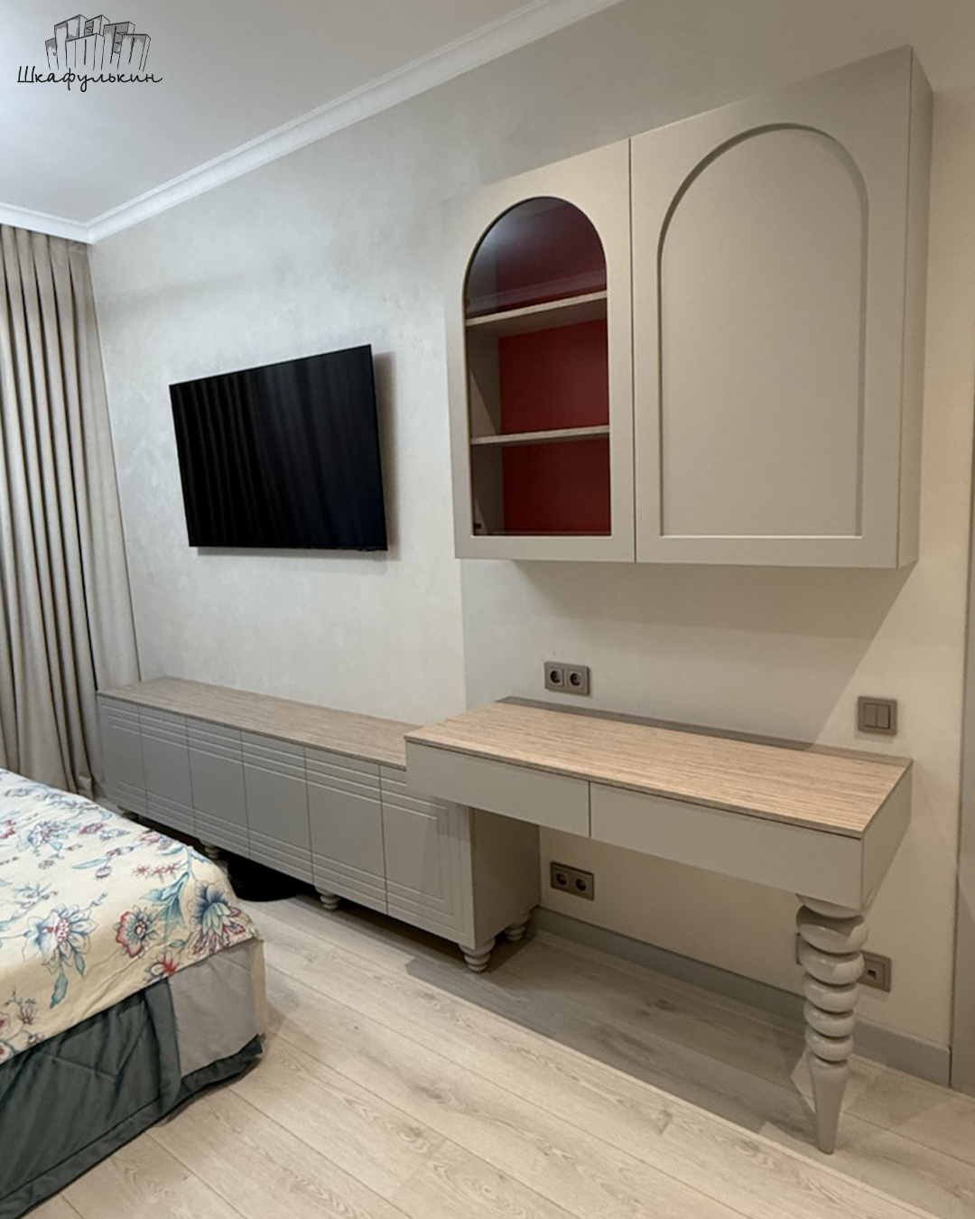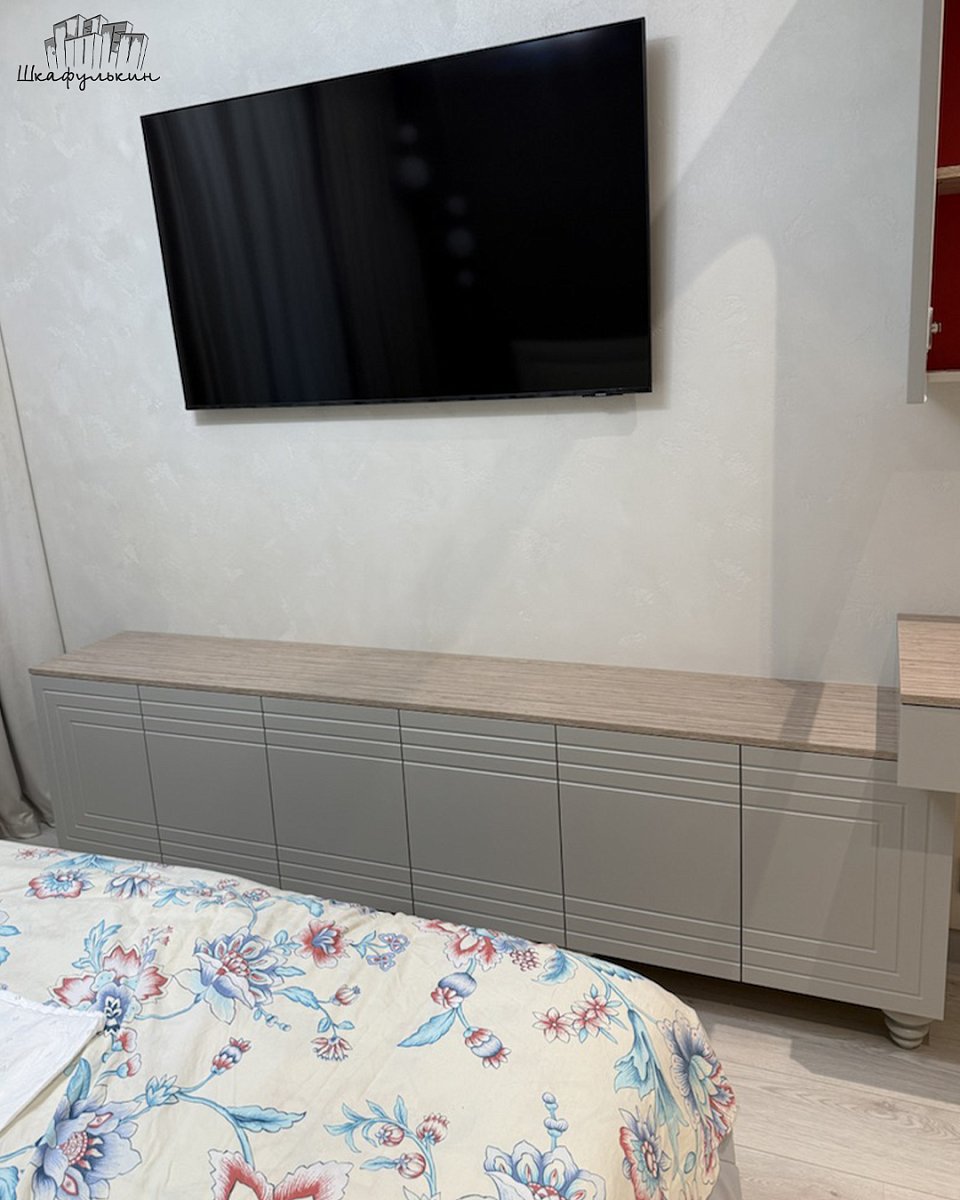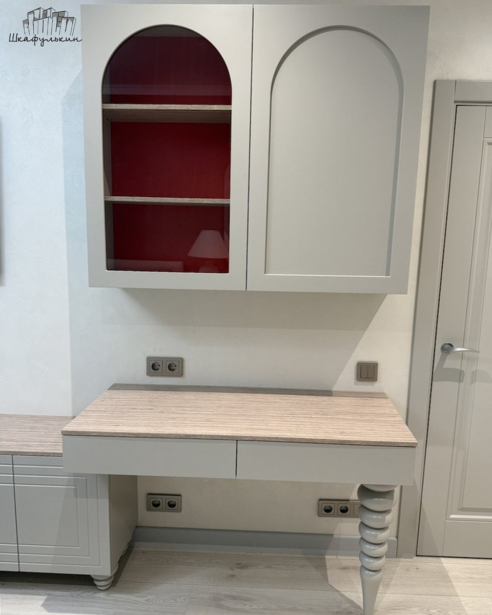 Фасады: МДФ 19 мм/RAL 7044 + вставка стекло.