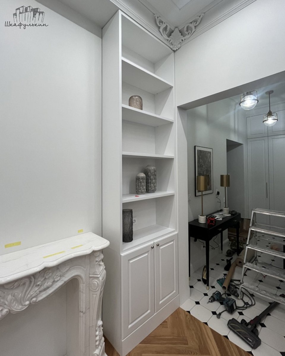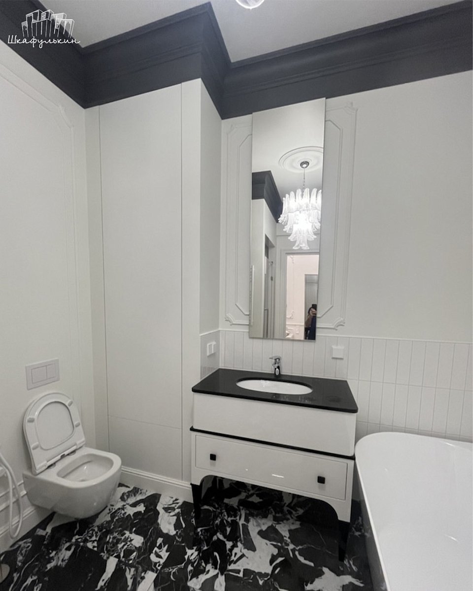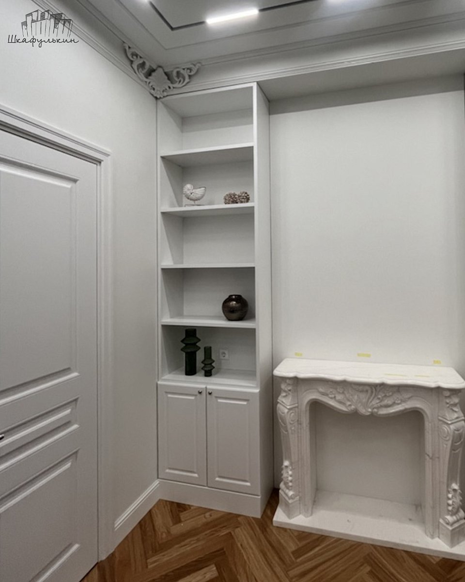 Корпус: ЛДСП Egger 16 мм/МДФ 16 мм/RAL 9003 глянец, молдинг.