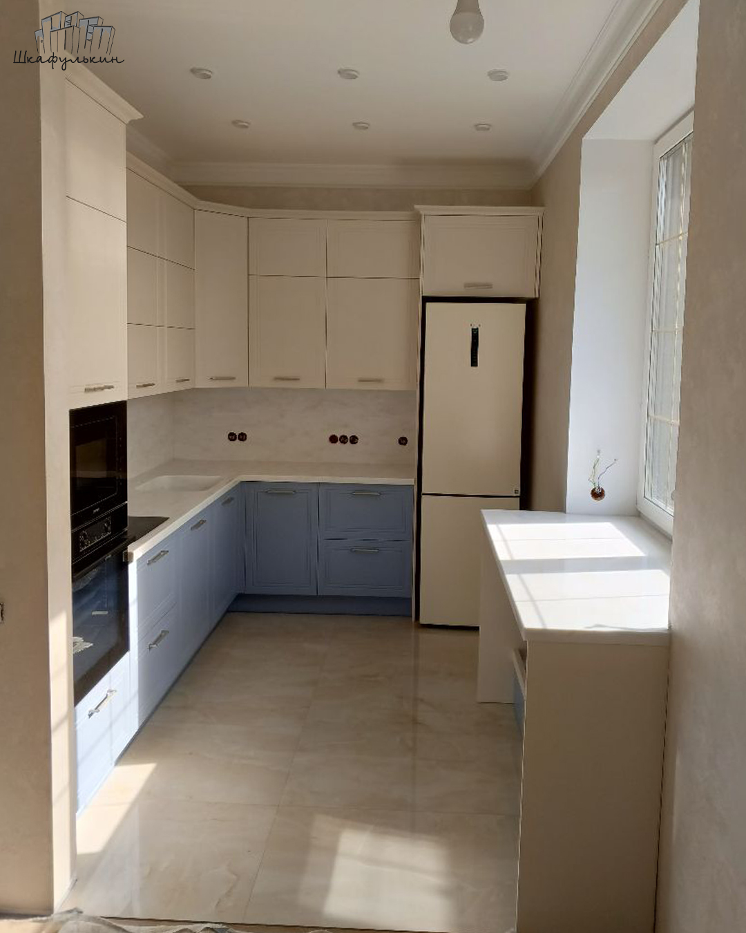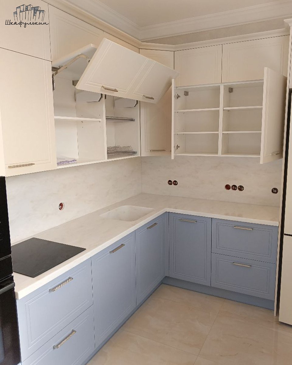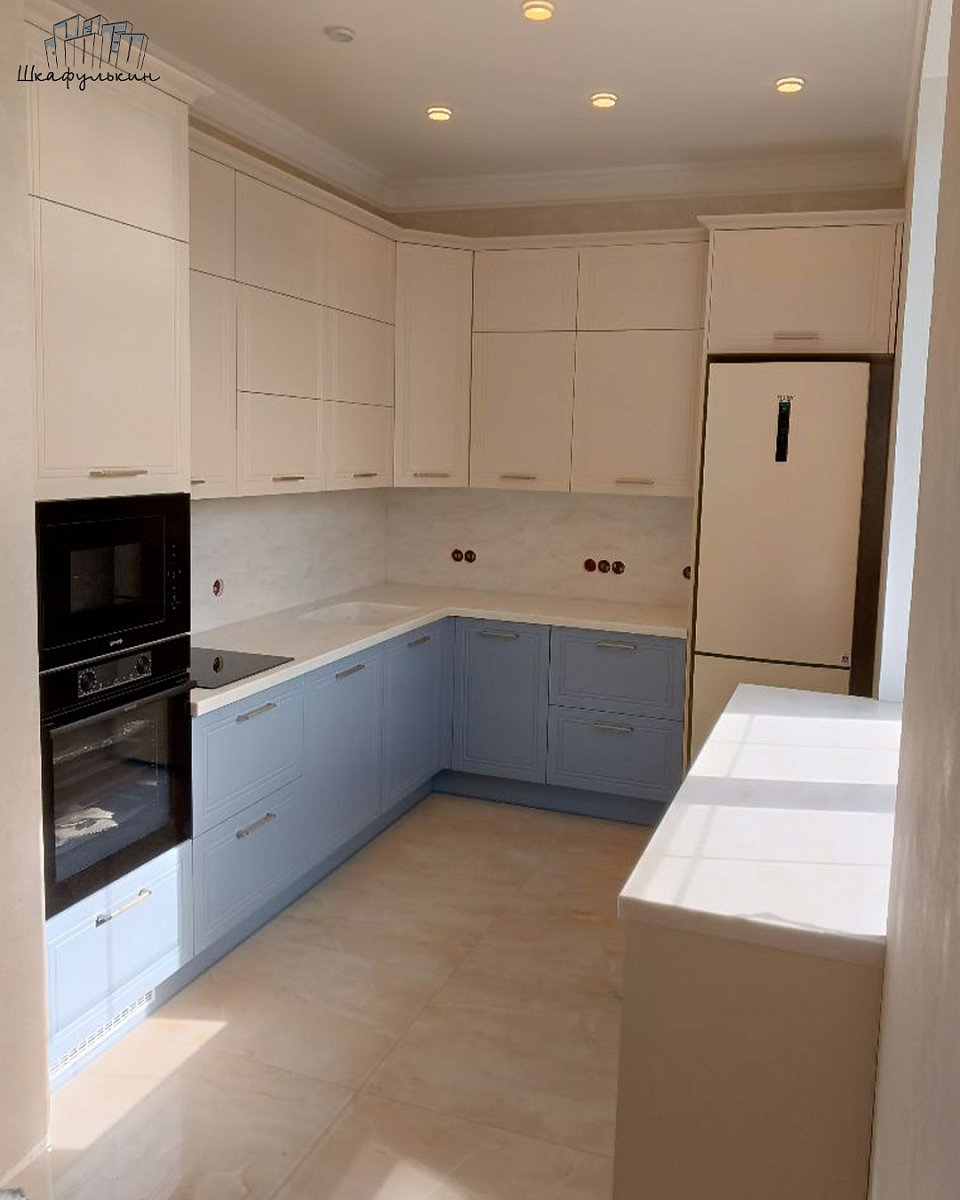 Фасады: МДФ 19 мм/NCS S 3010 R80B + NCS S 1005 Y50R.